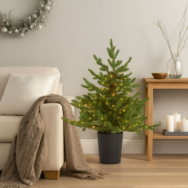Choose from snowy Christmas trees with frosted branches for a true winter wonderland look, traditional green faux fir trees for classic decorating schemes, or compact 3ft potted Christmas trees that bring a warm seasonal welcome to hallways, tabletops or covered porches. Our 4ft and 6ft slim trees offer the perfect balance of size and presence, making them versatile for city homes and smaller UK living spaces. Each design features dense, layered branches for a full and natural appearance, providing the perfect base for your choice of baubles, Christmas ornaments, garlands and ribbons.