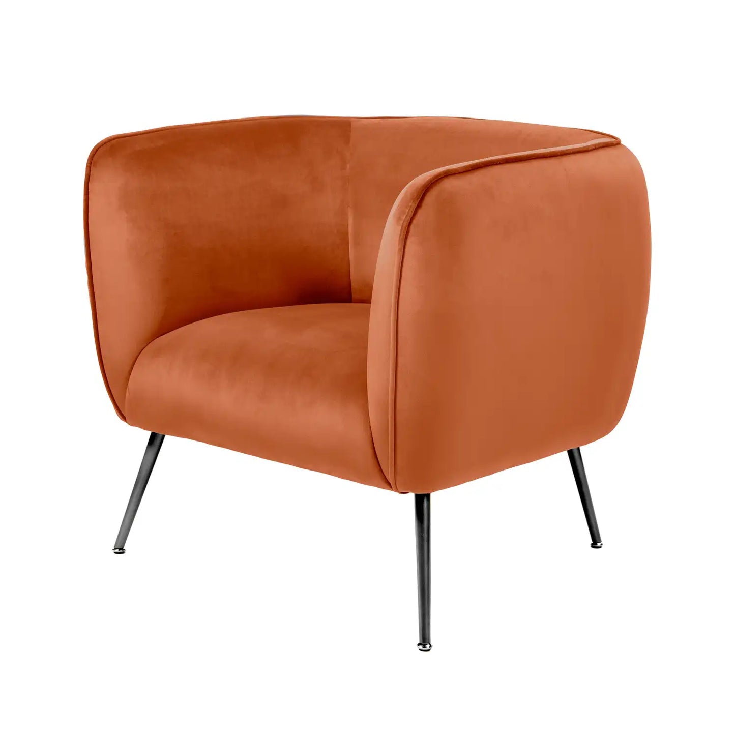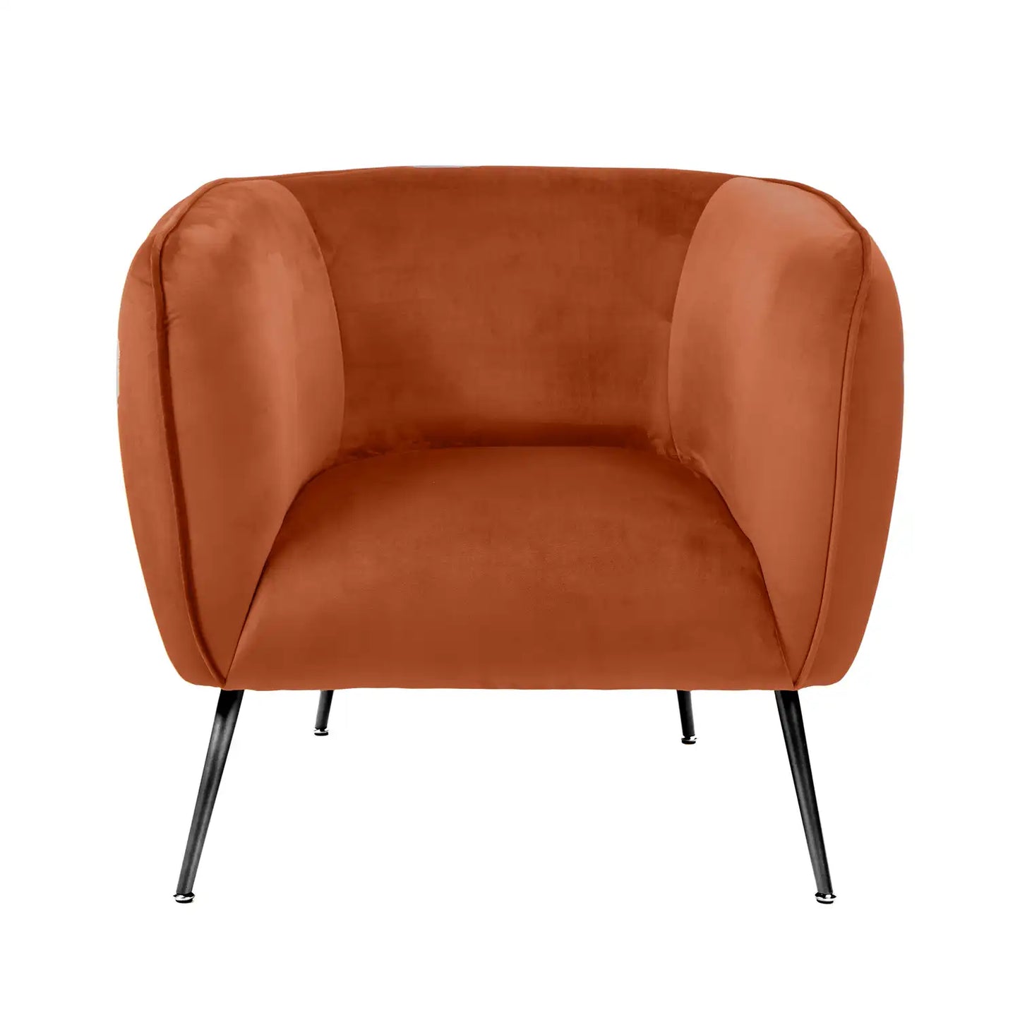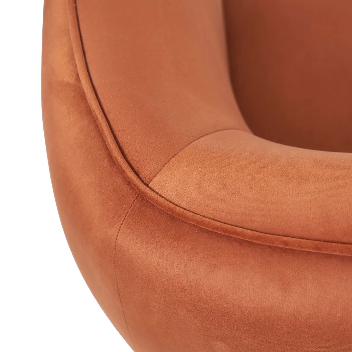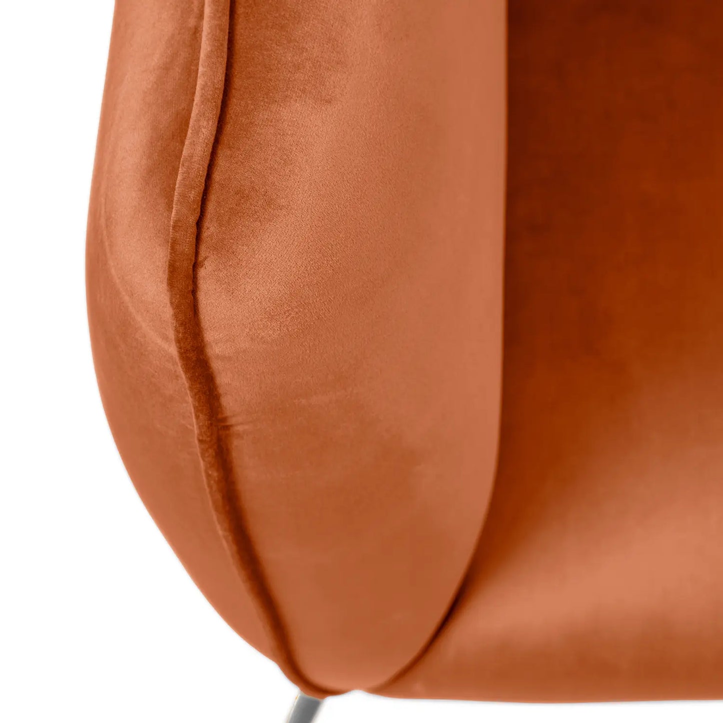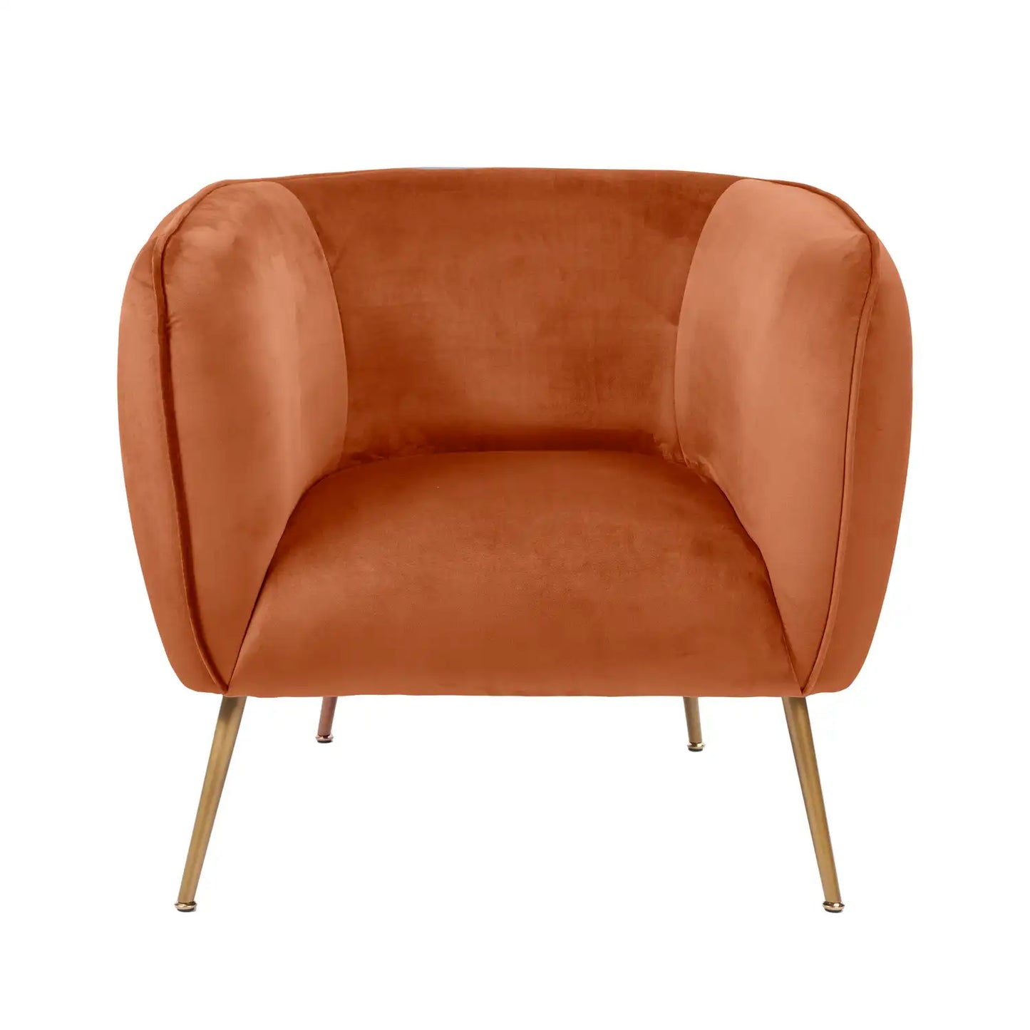 Measuring 80cm wide, 72cm in height, and 72cm in depth, this orange brown velvet armchair is the ideal size for cosy living rooms, or as an orange accent chair in a bedroom. Made from luxurious orange velvet, it is not only visually appealing, adding depth to your home, but also soft to the touch for maximum comfort. Its rich texture and orange colour add a sense of luxury to your room. With its stylish design, flexible features, and luxurious material, this orange brown velvet accent chair adapts to your changing styles. Whether you're looking for a comfortable seating option or a chic focal point, this orange brown velvet armchair offers the perfect blend of style and comfort.