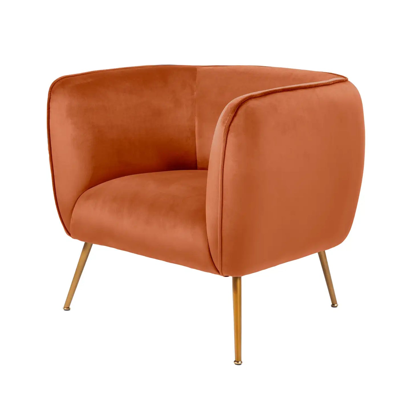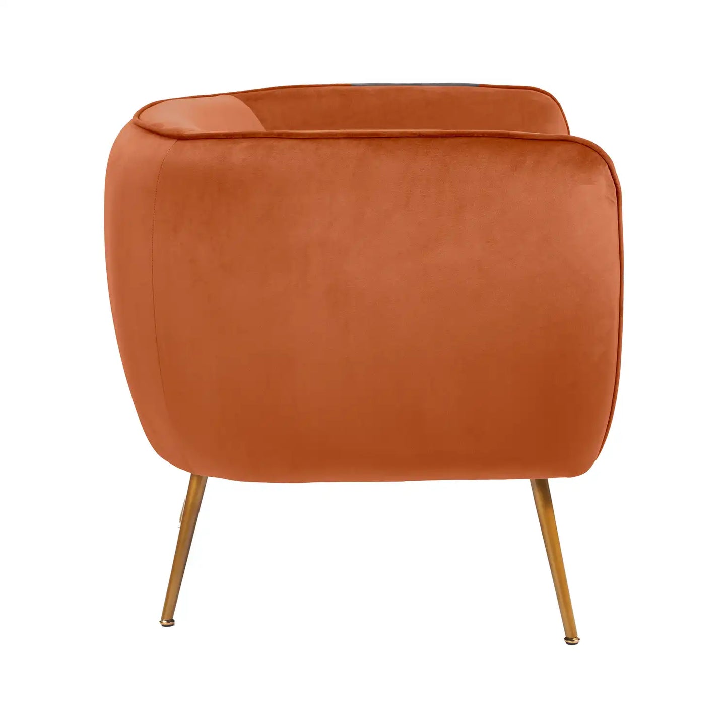 Aalya Orange Brown Velvet Armchair with Gold/Black Metal Legs
