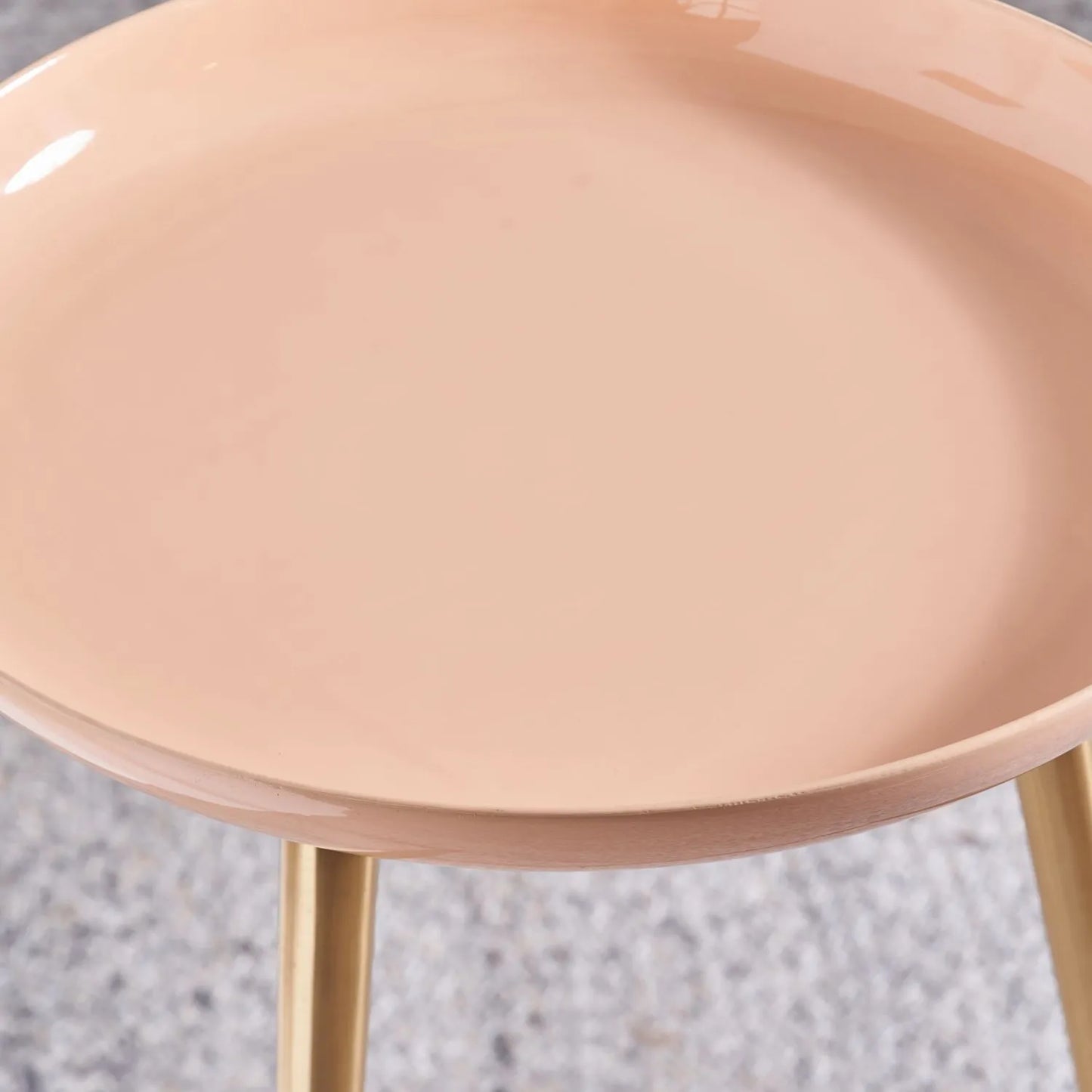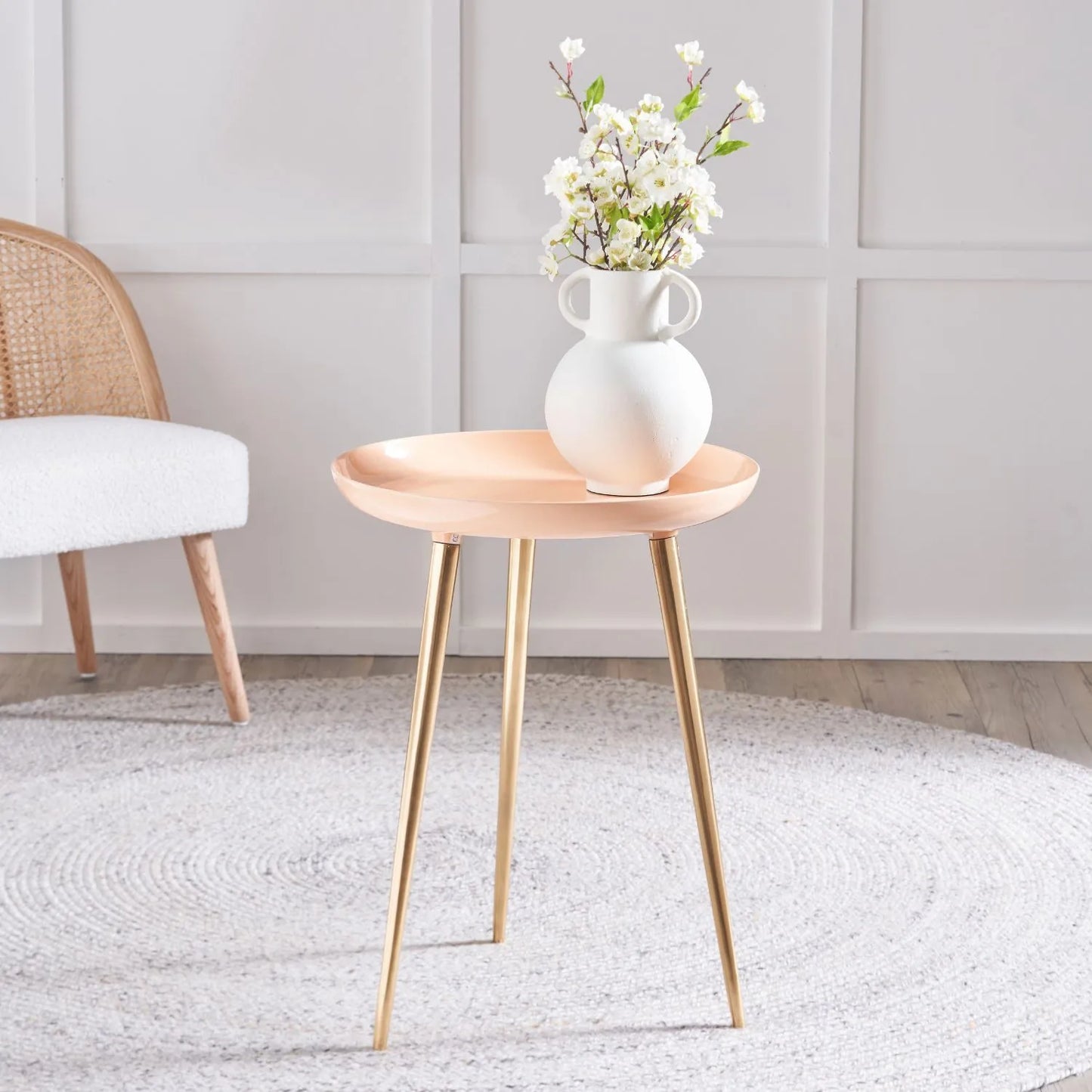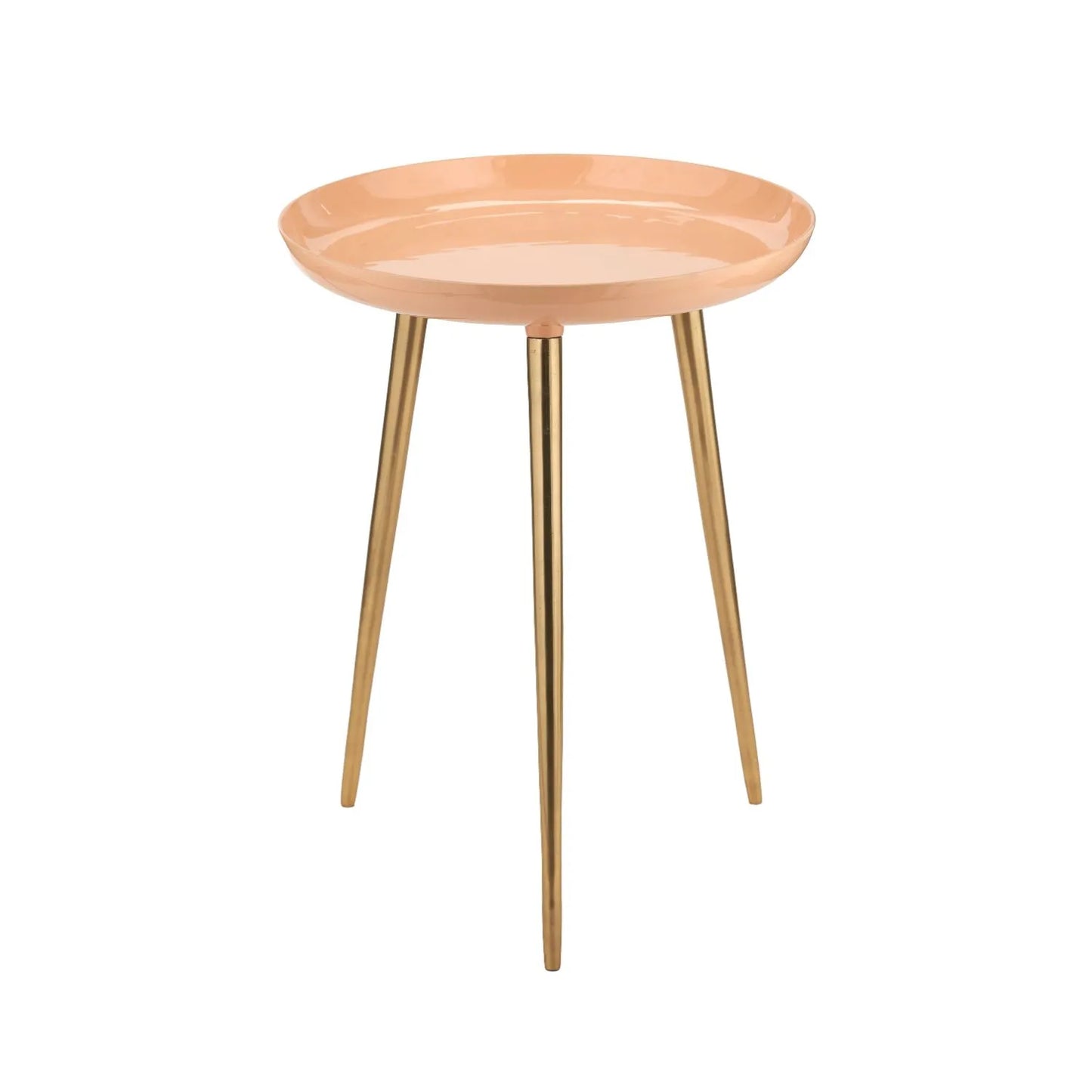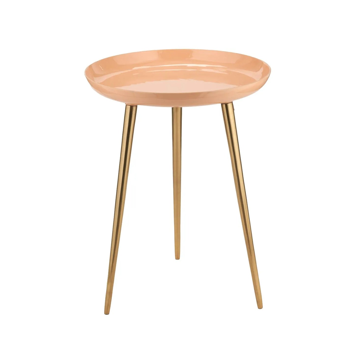 Apricot Peach Round Tripod Enamel Side Table with Gold Metal Legs – Modern Accent Table 58x44x44cm