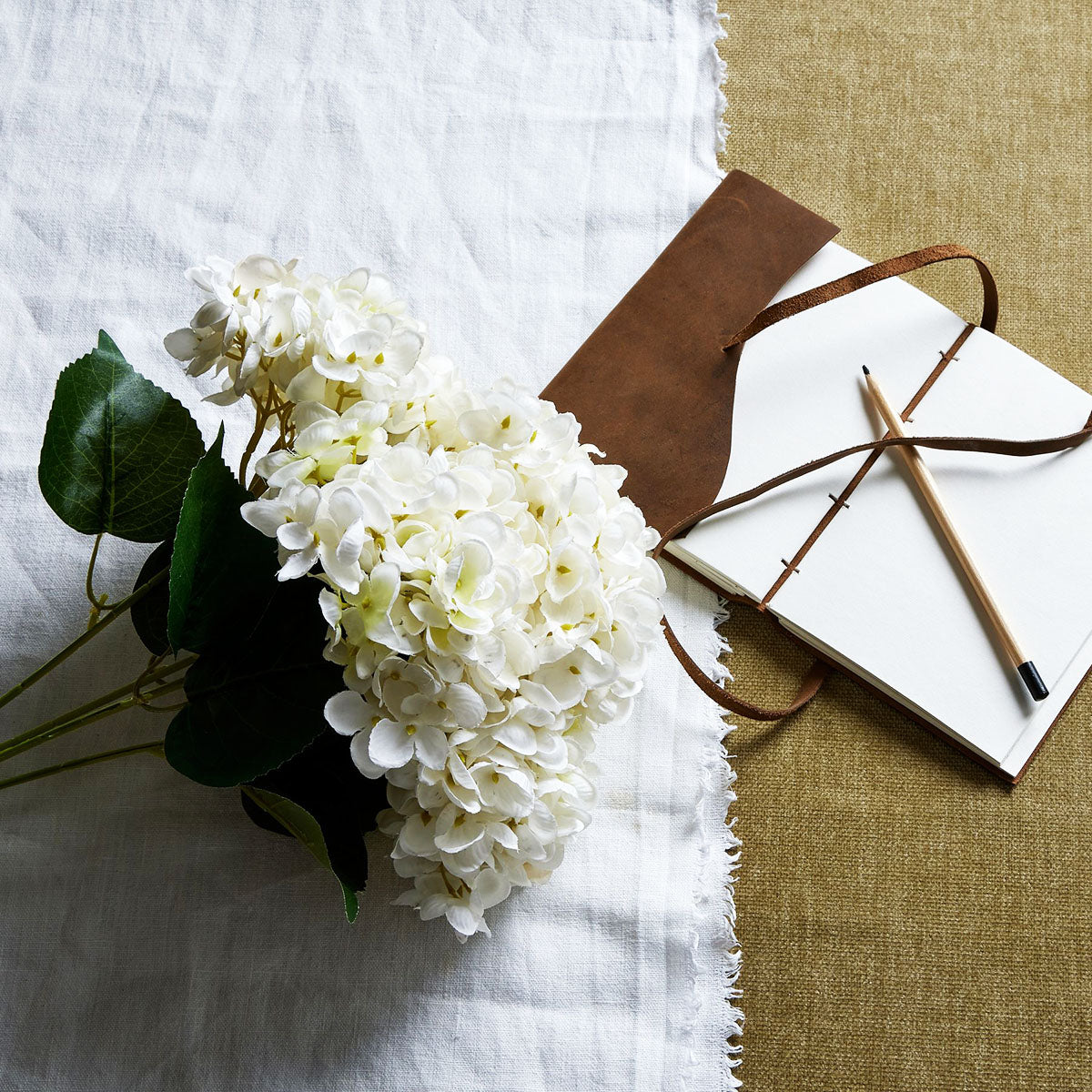 This voluminous artificial creamy white multi-bloom hydrangea, featuring five blooms per stem, makes a wonderful focal flower in contemporary floral arrangements.