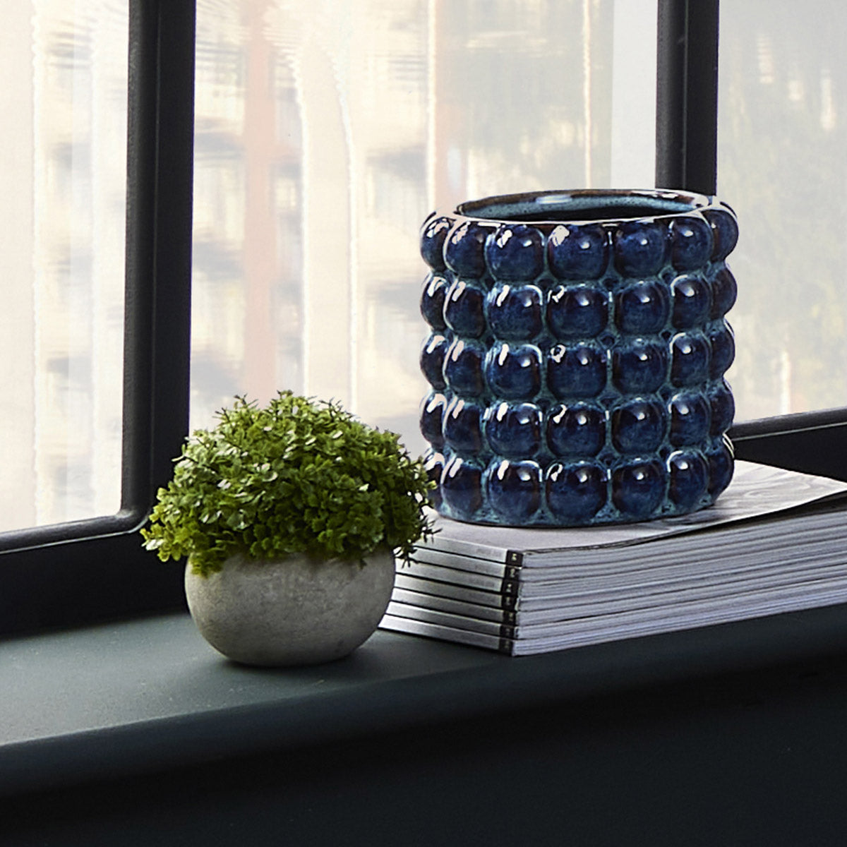 Crafted from durable material, it's robust and ready to rumble with the rowdiest of pets or the most curious of toddlers and it's allergy-free. Measuring a neat 13cm high and 13cm wide, this compact size beaut is a dream for dressing up those small spaces with some faux foliage and realistic texture.