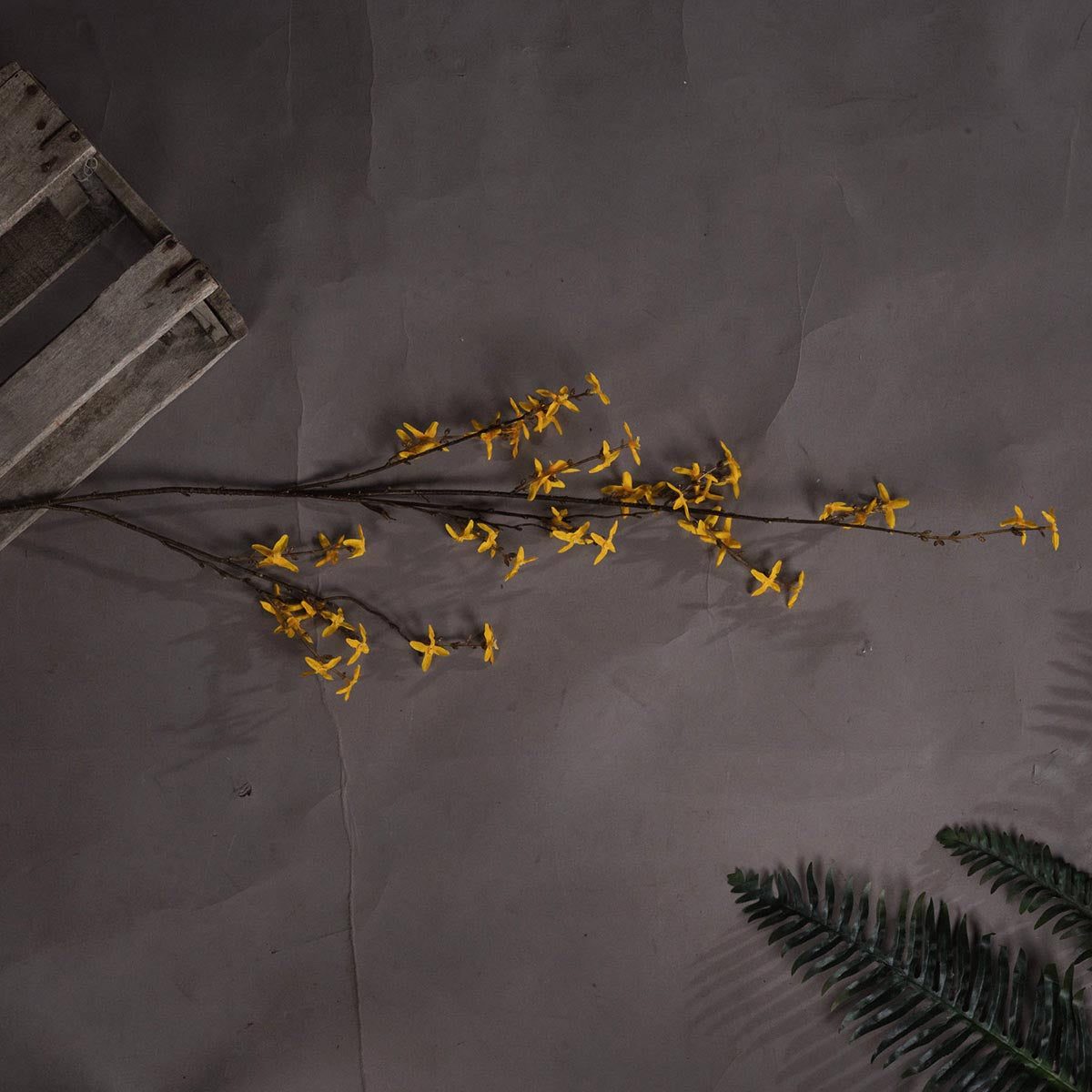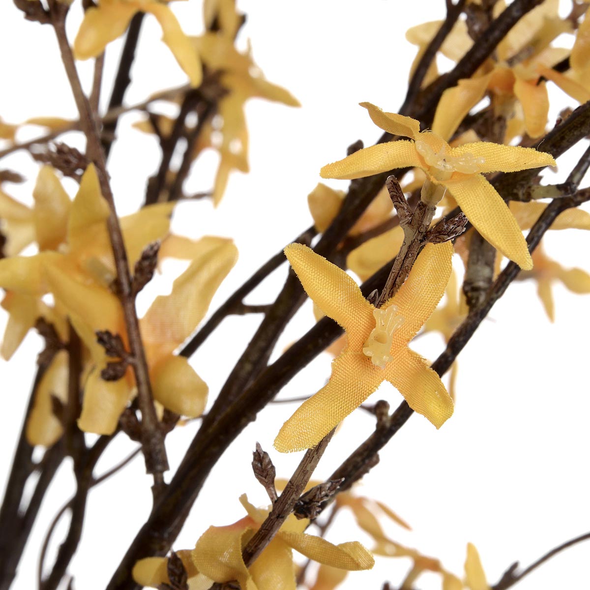 This artificial vibrant yellow forsythia is a high-quality, realistic faux flower for use in floral arrangements to brighten up your home decor.