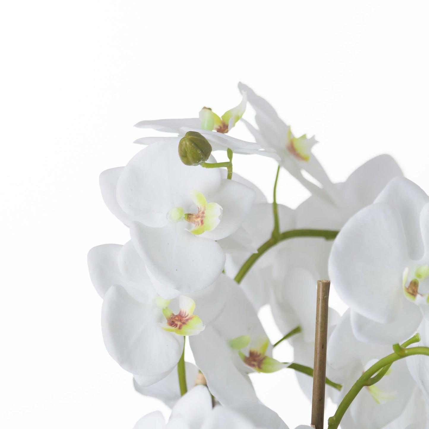 Feast your peepers on our artificial white orchid and fern arrangement with a realistic root ball, a botanical statement piece. This white orchid features fake but real to touch blooms that'll have you doing a double-take and a double tickle of the blooms to double check.