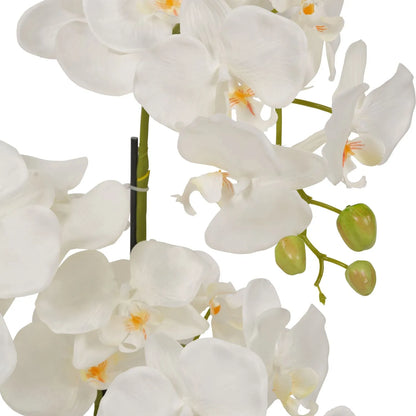 Add timeless elegance to your home with this tabletop artificial white orchid plant, a realistic faux orchid designed to bring effortless beauty to your indoor decor. Standing at 80cm tall and 35cm wide, this lifelike orchid features delicate white blooms with intricate detailing, fresh green leaves, and budding flowers, replicating the natural look of a real orchid in full bloom. The gracefully arched stems, supported by slender stakes with subtle ties, capture the sophistication of real orchids—without any upkeep.