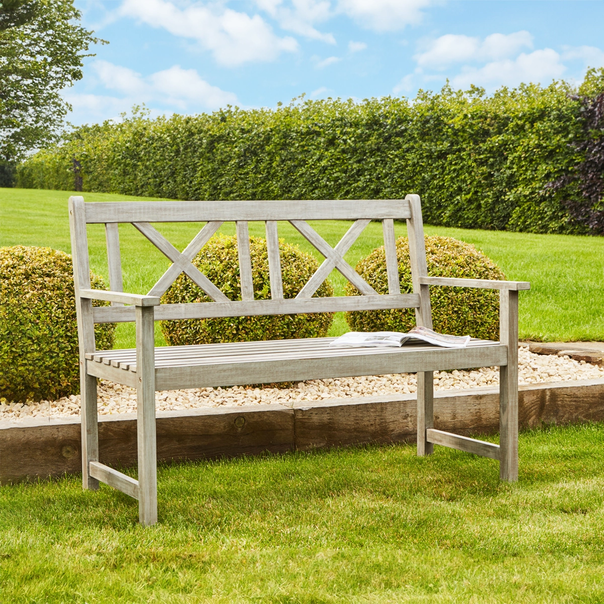 Berkshire Antique Grey Acacia Wood 2 Seater Garden Bench