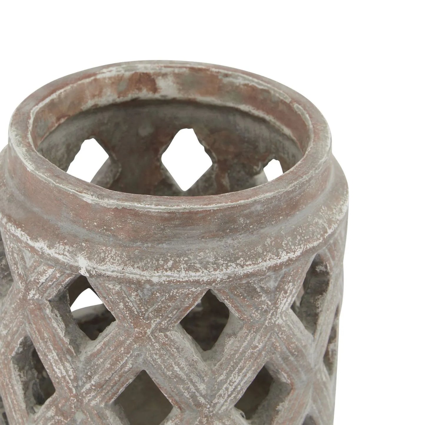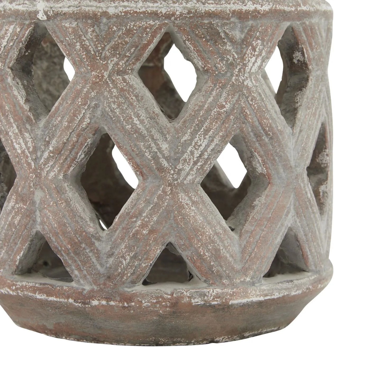 - Textured ceramic lantern with diamond lattice cut-outs