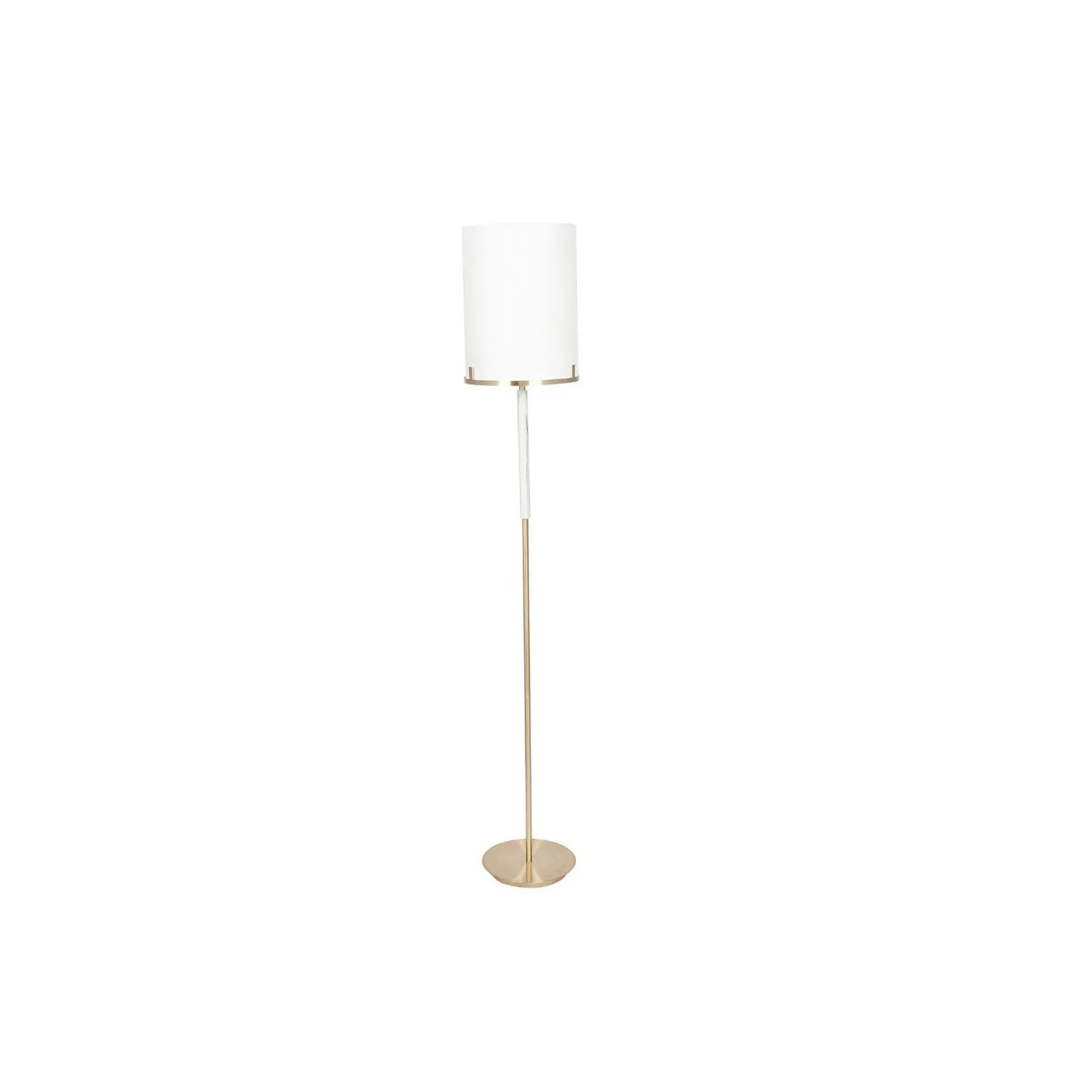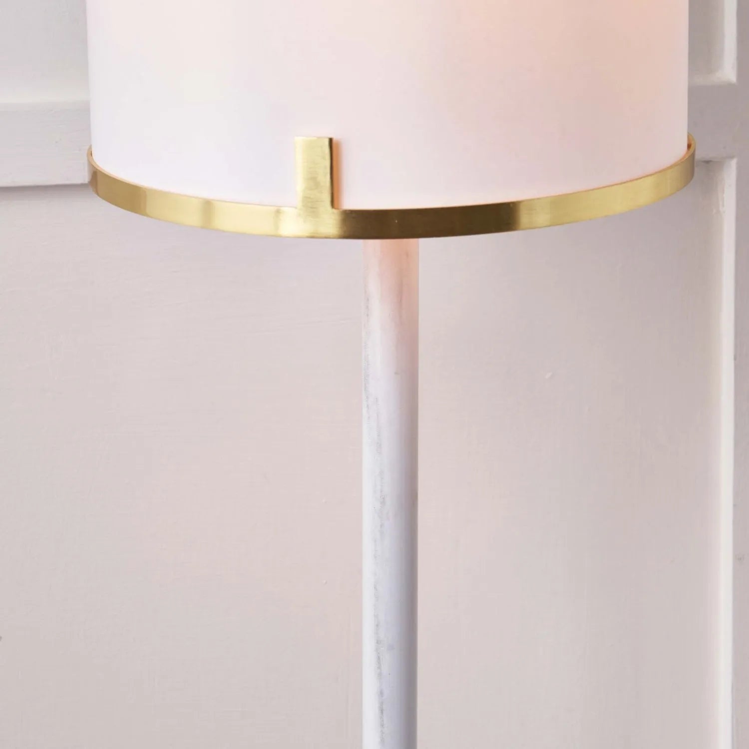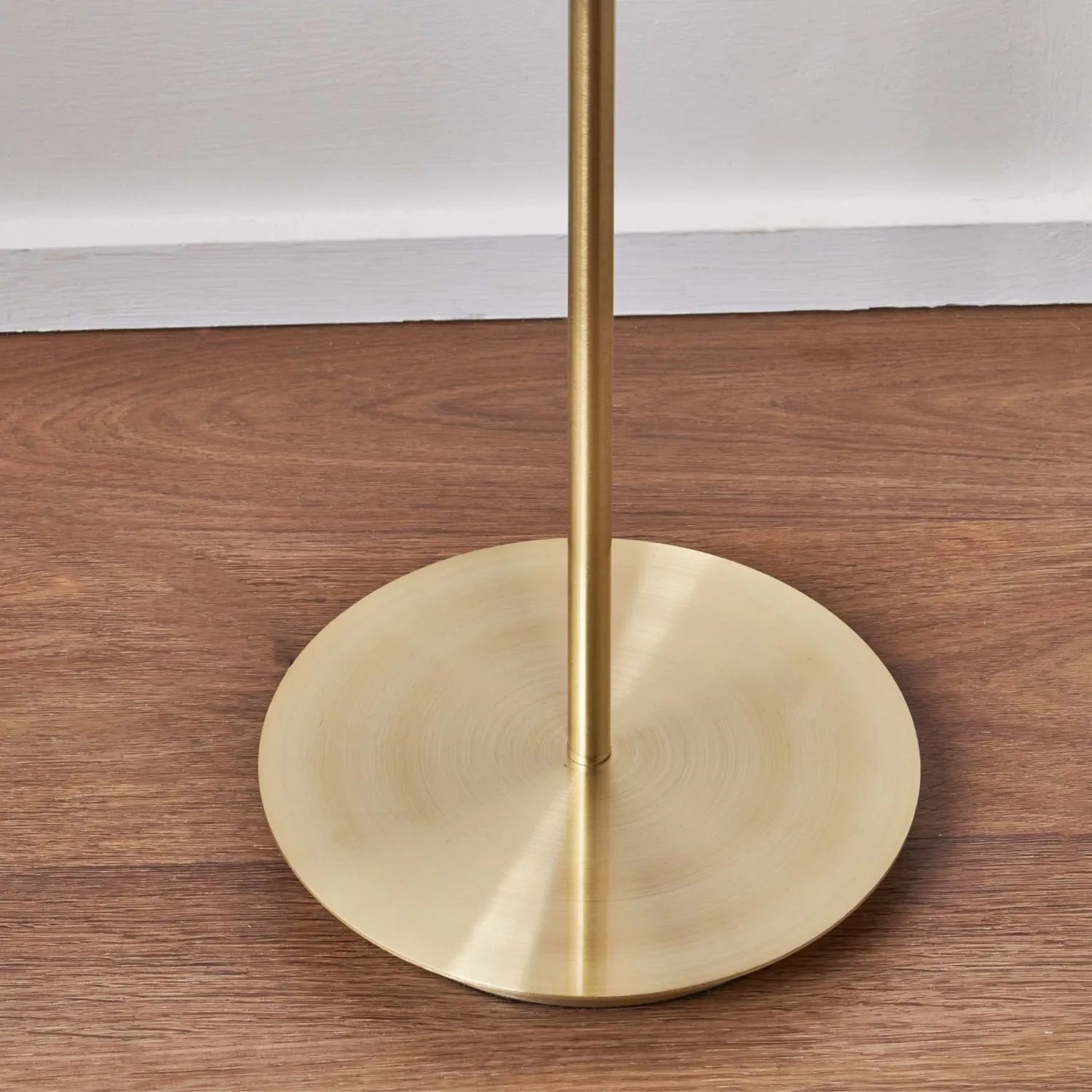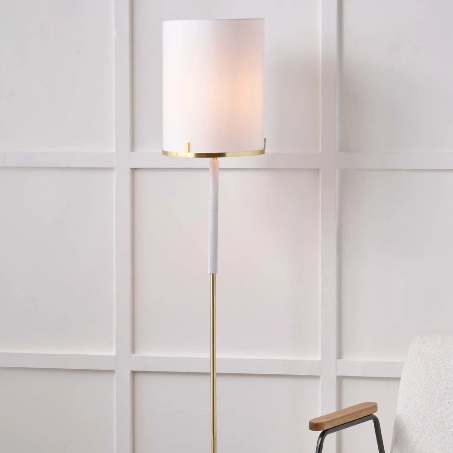 Add a modern yet timeless look to your home with this champagne gold and white marble effect floor lamp. Standing 160cm tall, it features a slim metal profile in a brushed champagne gold finish, complemented by a subtle white marble effect detail for a touch of elegance. The sturdy round base includes a soft black felt underneath to protect your floors, blending thoughtful design with practicality.