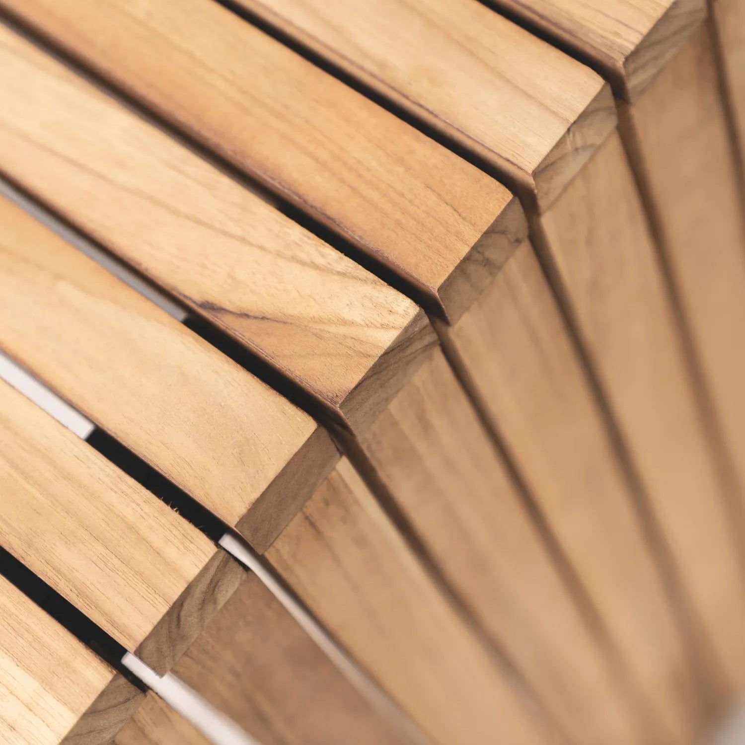 - Slatted teak wood top and side detailing with a durable aluminium frame