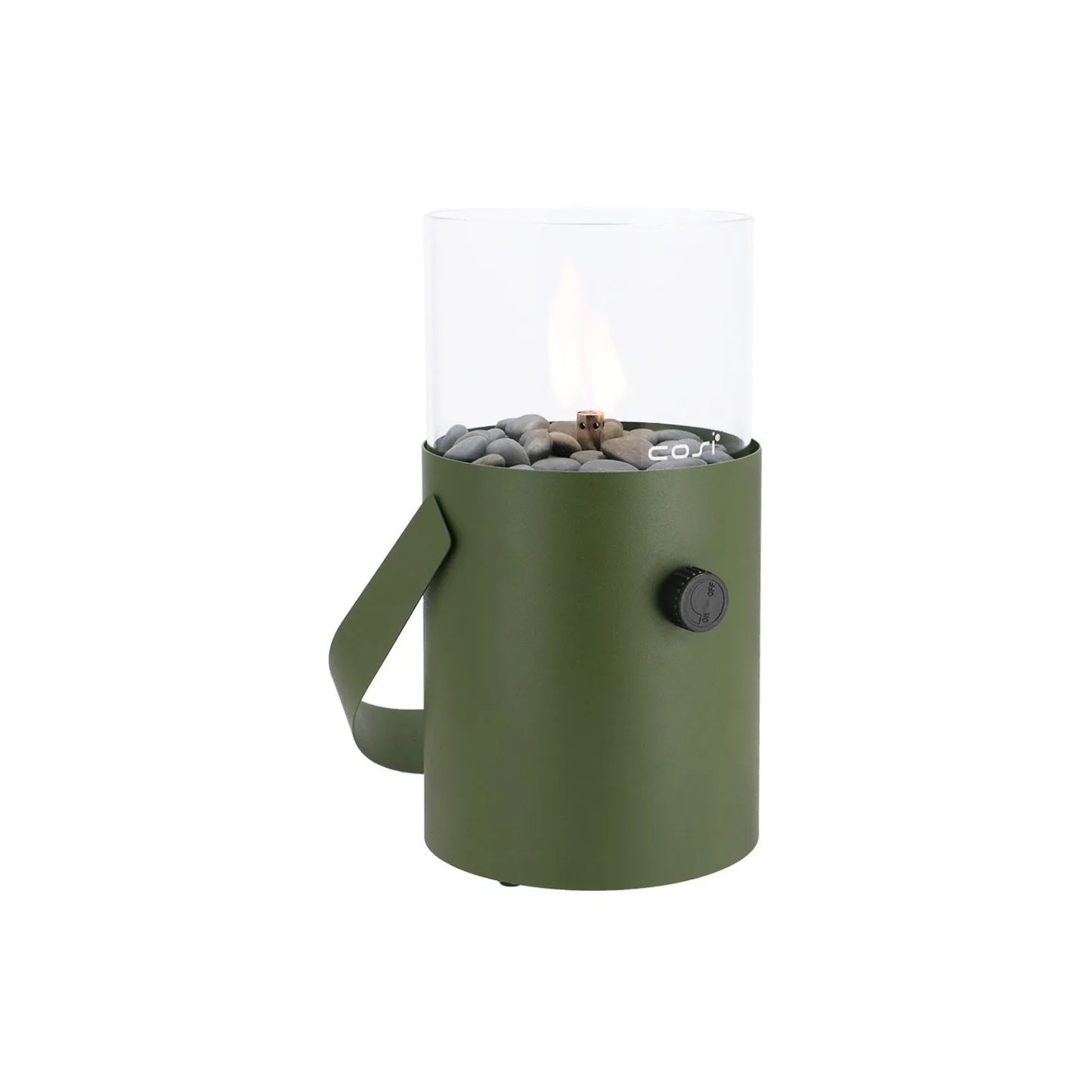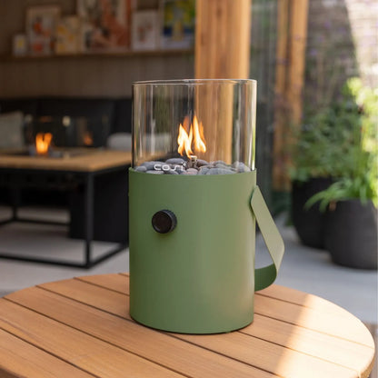 Bring a touch of natural elegance and soft ambient glow to your outdoor space with the Cosiscoop heritage green portable gas fire lantern. Featuring a sleek cylindrical base and matching carry handle, this compact metal and glass tabletop firepit is ideal for patios, balconies, garden tables, and terraces. The muted heritage green finish introduces a classic, countryside-inspired tone that pairs beautifully with both traditional and modern outdoor décor.
