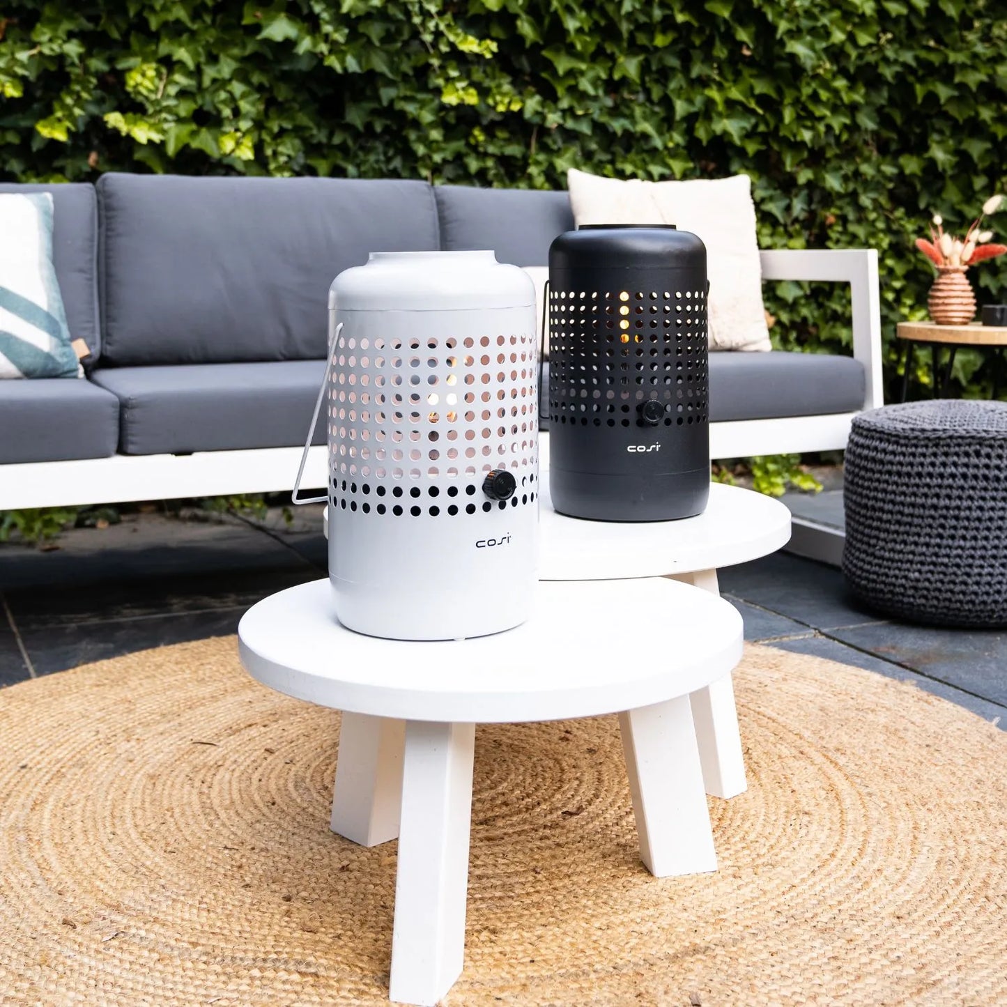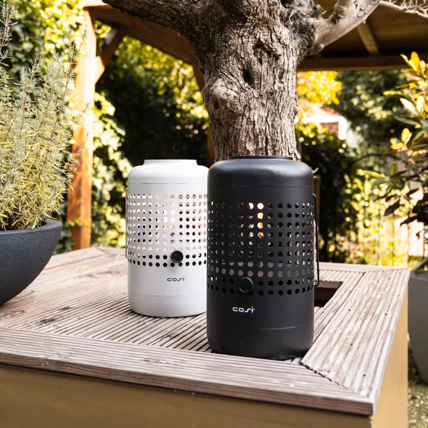 Compact yet durable, the Cosiscoop lantern measures 37cm tall, 20cm wide, and 20cm deep, making it the ideal size for tabletops or terraces. The perforated base design not only enhances airflow for optimal performance but also adds a contemporary touch. The matt black finish gives it a timeless, understated elegance that fits effortlessly with various outdoor styles.