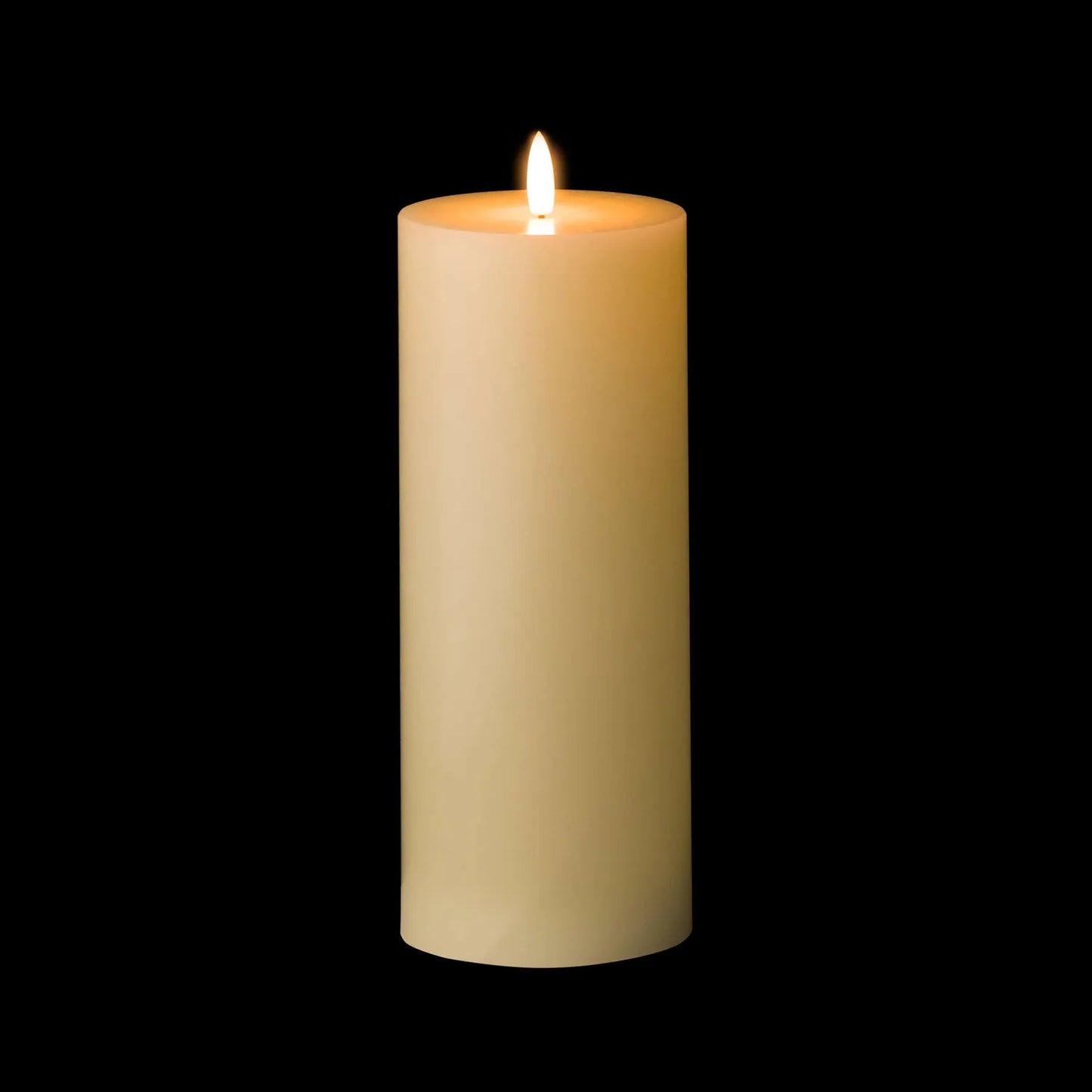 This cream pillar candle measures 23cm x 9cm (3.5"x9") and can be used alone, grouped with other sizes of LED candles, or in a candle holder.