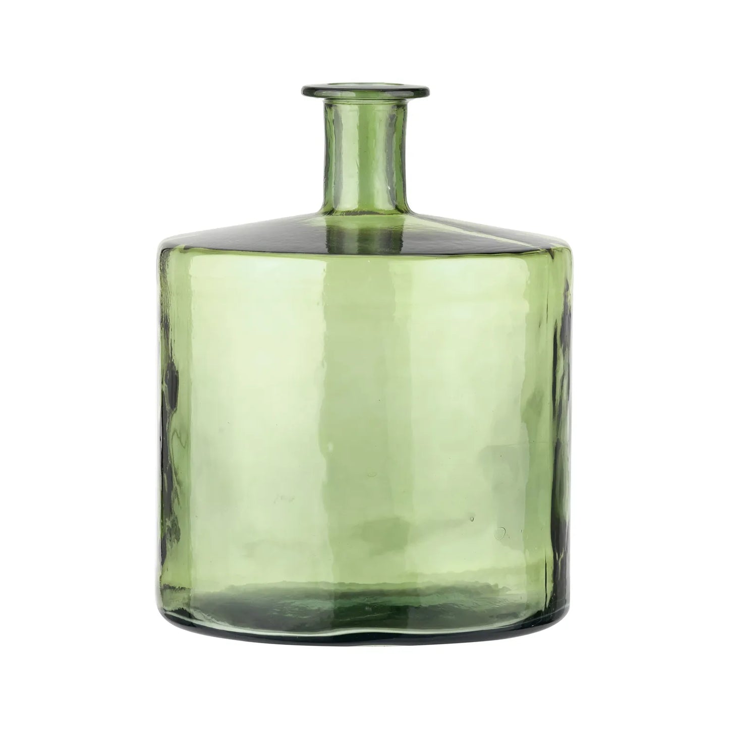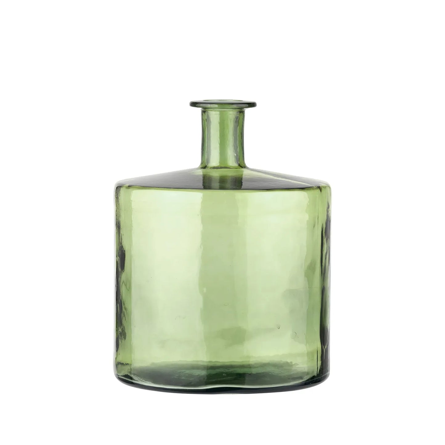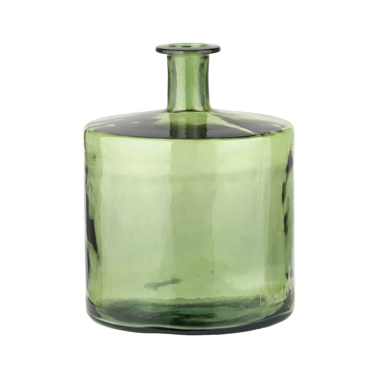 This striking forest green recycled glass bottle vase is floor-standing, adding a lush pop of colour to your home. The large glass vase captures the light and softens any space with its smooth, green tint and sustainable, recycled glass.