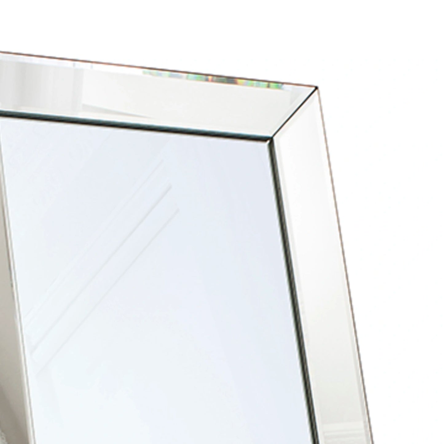 This full length angled silver freestanding mirror has a bevelled design and is an ideal addition to any modern or classic interior. With its sleek silver finish and elegant bevelled edges, this mirror adds a touch of sophistication to your bedroom, dressing room, or hallway. The angled design not only enhances its contemporary appeal but also provides a practical full body view, perfect for those quick outfit checks before heading out.