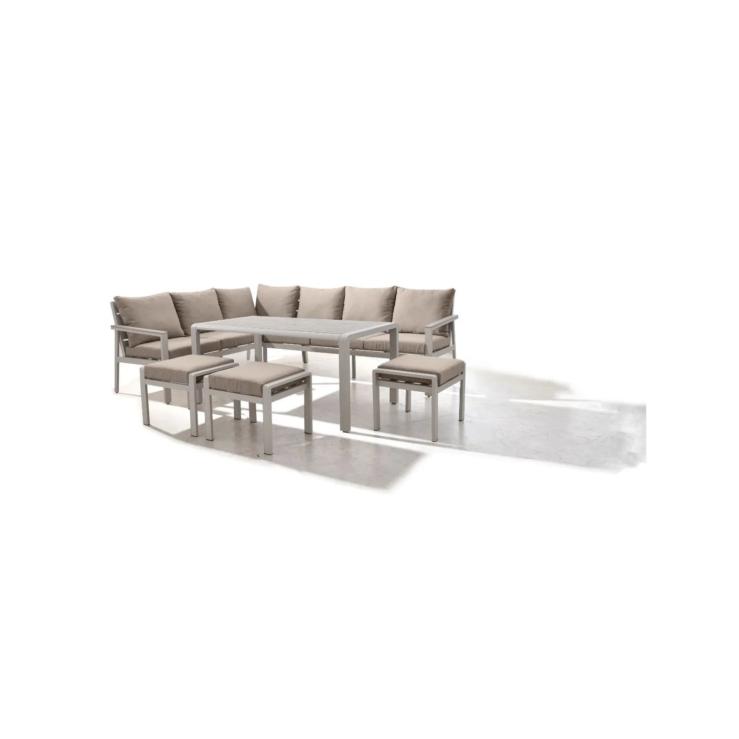 Grey & Cream 8-Seater Outdoor Garden Corner Sofa Dining Set with Cushions – Aluminium Frame, Polywood Table & Footstools