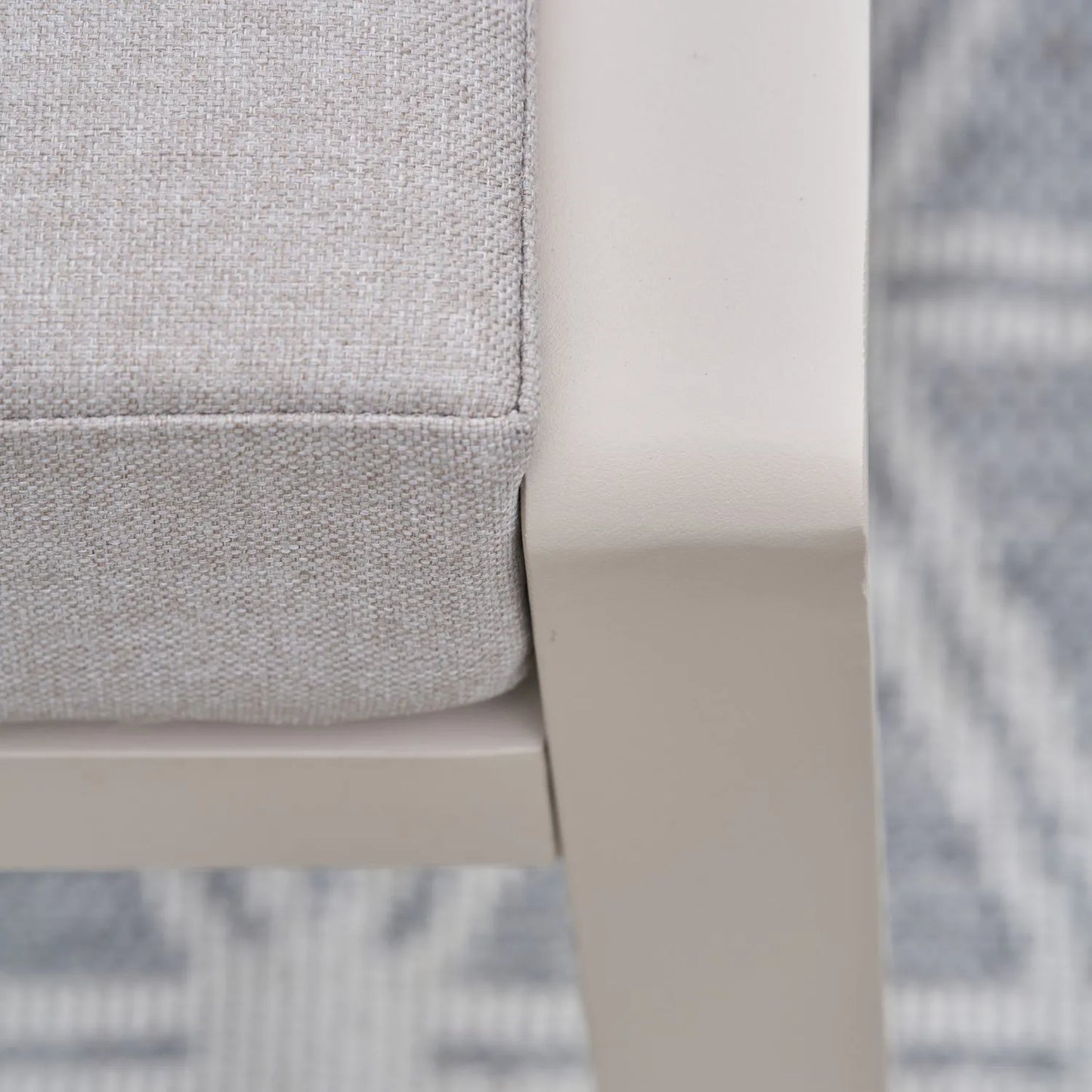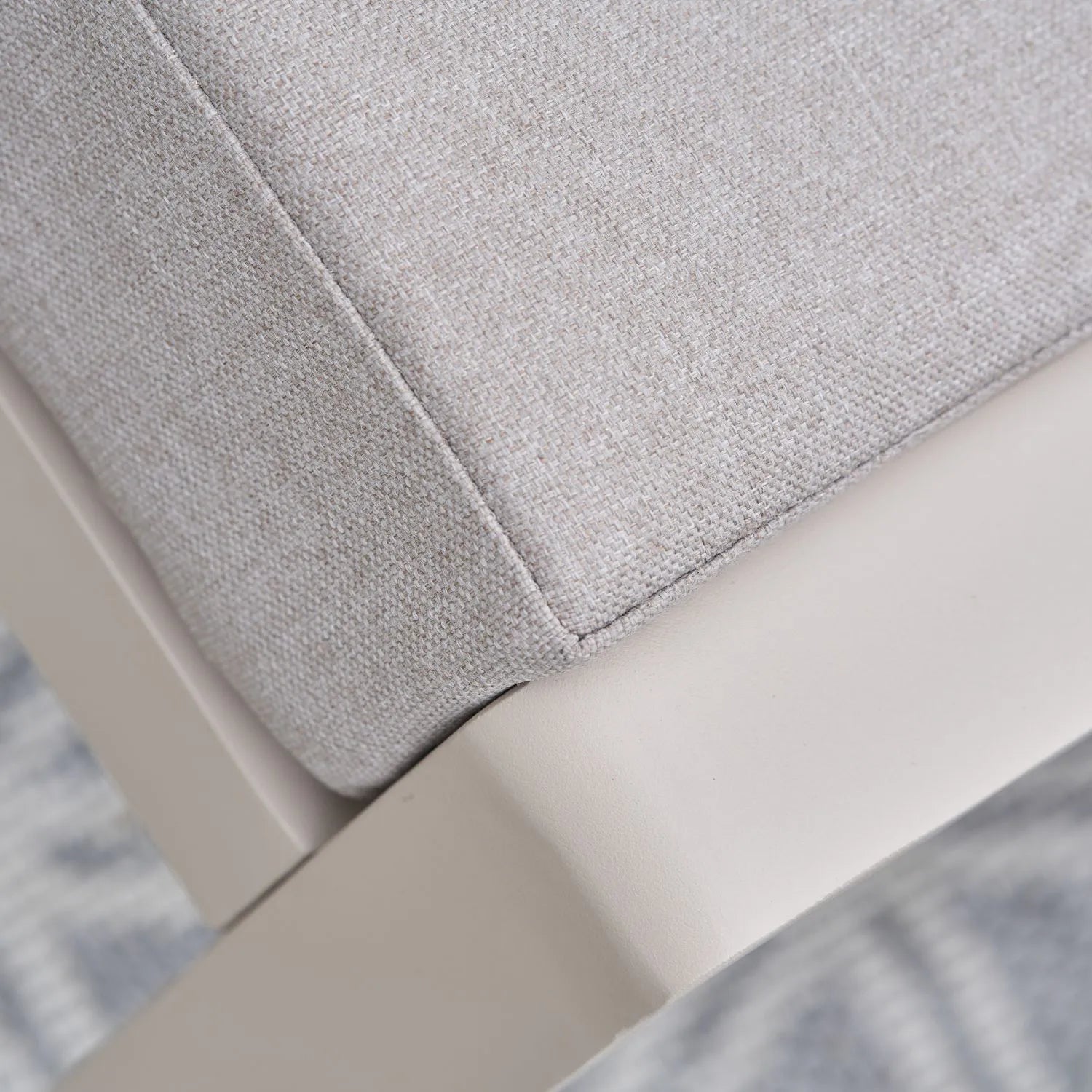 - Includes season-proof cushions in light grey putty Olefin fabric