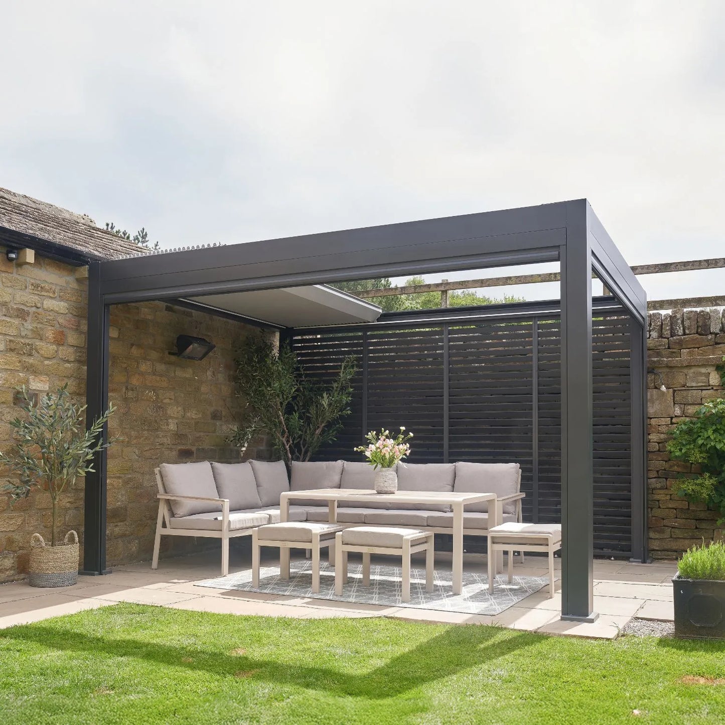 Whether you're gathering friends for summer drinks, enjoying your morning coffee in the sun or unwinding with a glass of wine in the evening, this modern corner sofa set creates a welcoming and comfortable outdoor retreat. For a cosy finishing touch, style it with an outdoor rug, a fire lantern and a few scatter cushions to take you from sunny days into cool evenings.