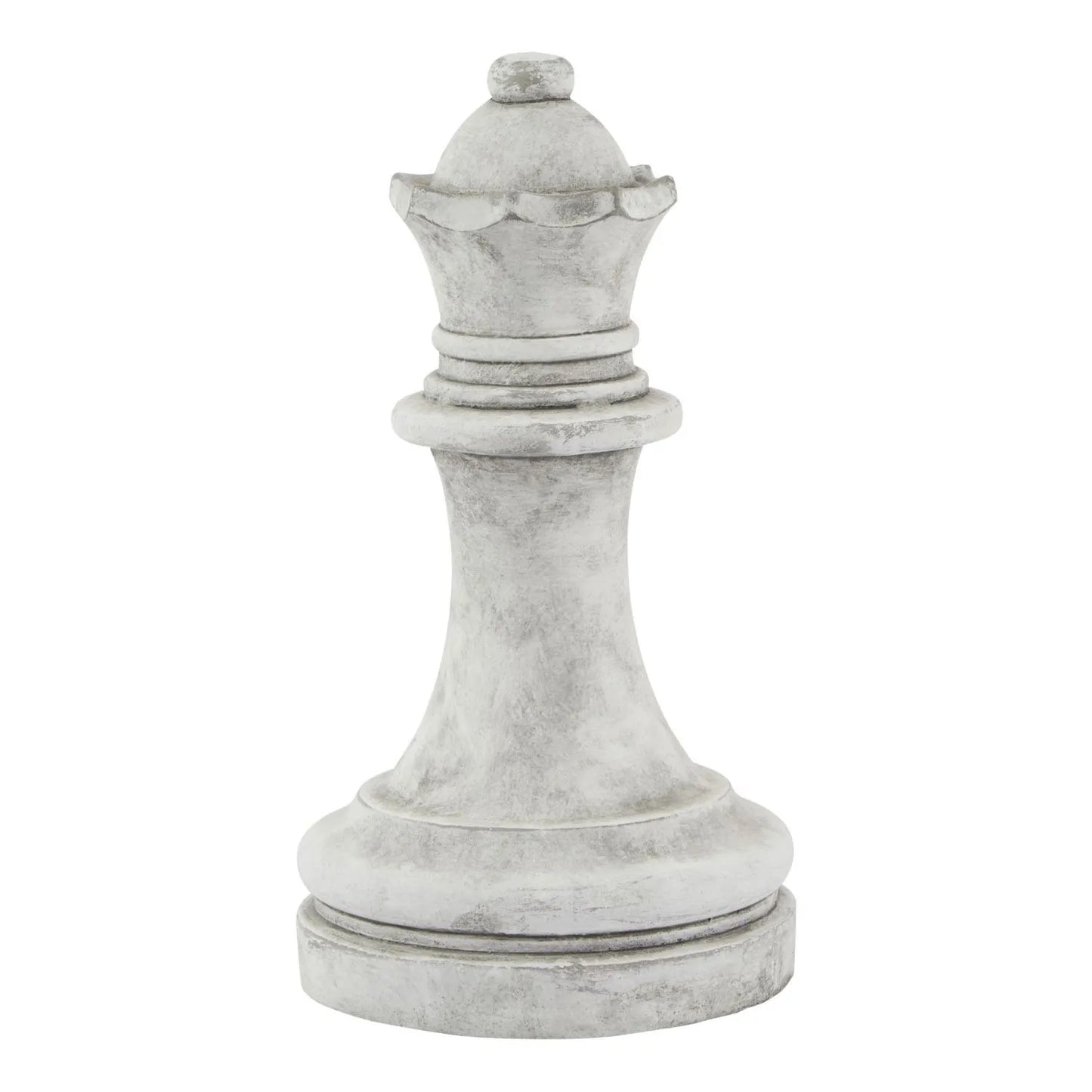 - Large grey ceramic Queen chess piece with aged stone-effect finish