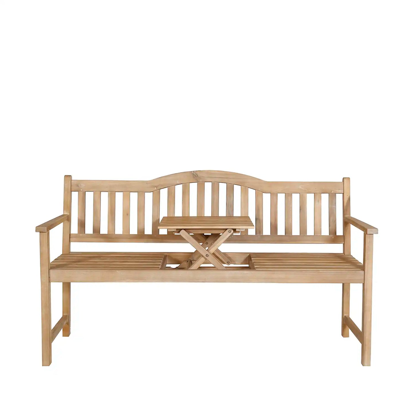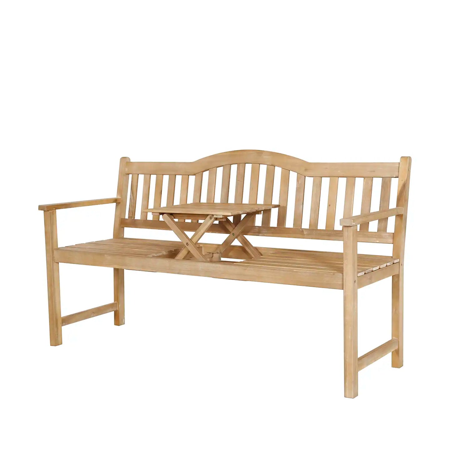 Henley Natural Acacia Wood Garden Bench with Pop-up Table