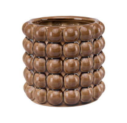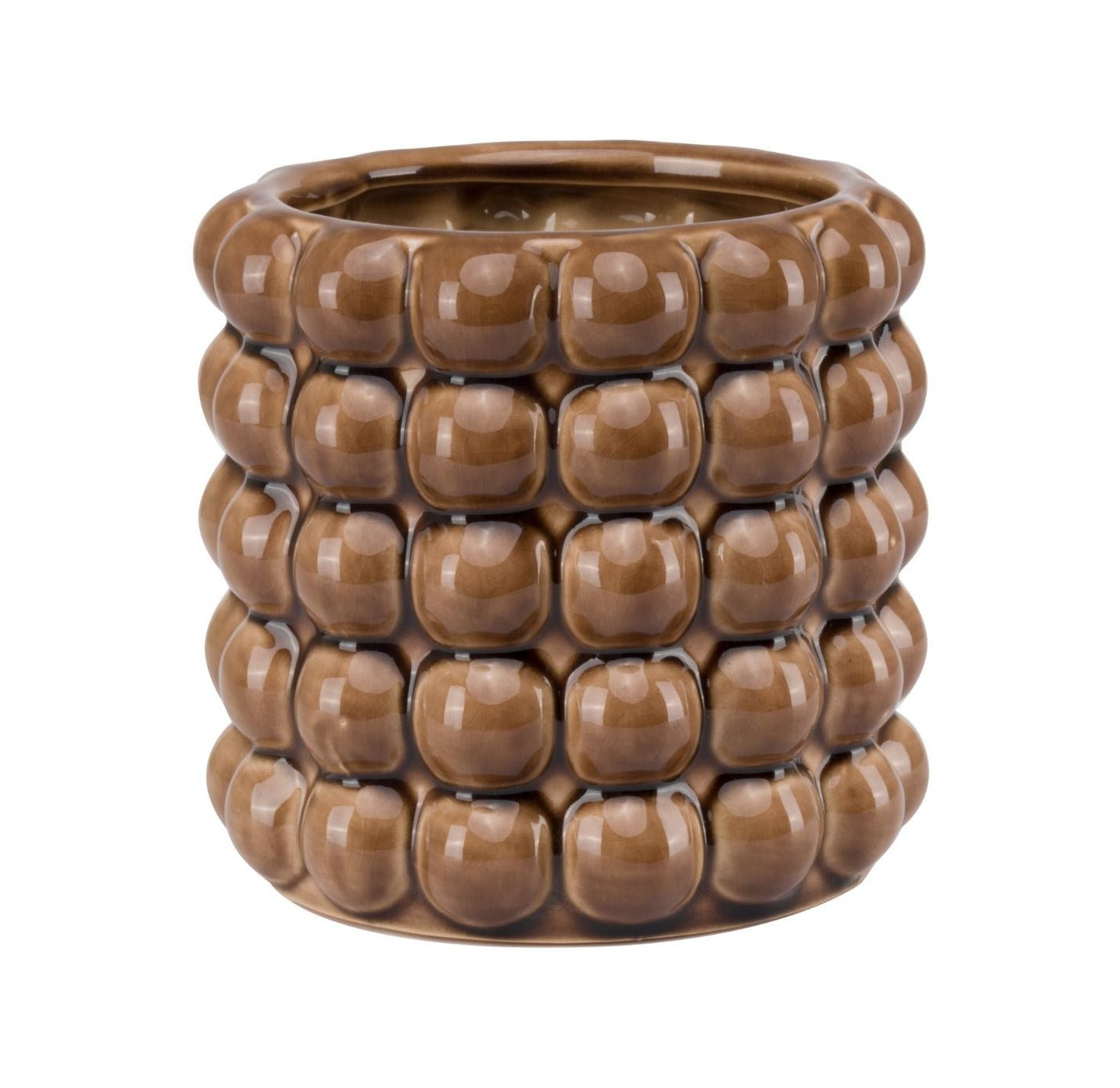 This bubbler planter is handcrafted in ceramic and is an eye-catching piece for your favourite houseplant. Measuring 20cm with all-over bubble texture and glazed in a rich caramel colour, showing your chosen plant off to perfection and enabling you to layer texture into your home.