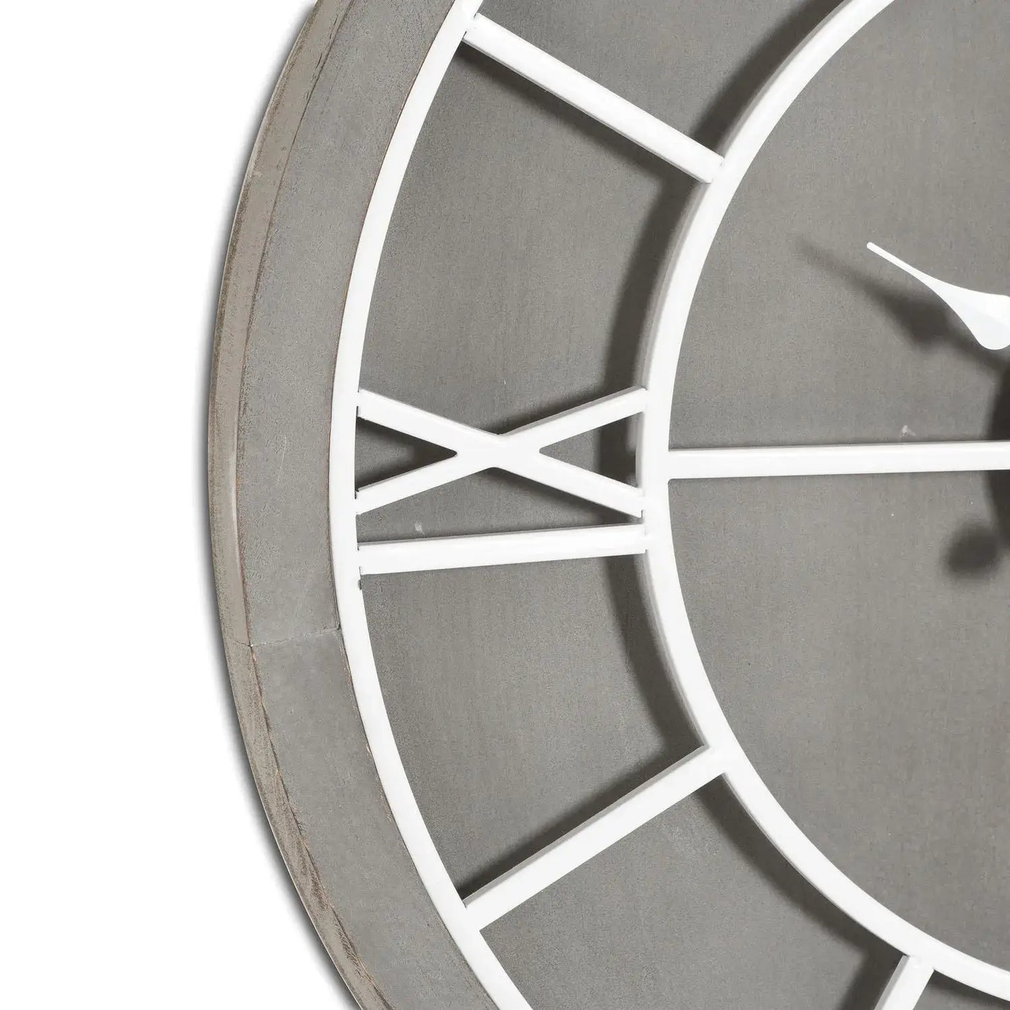 - Modern Design: Stylish grey wooden frame with contrasting white metal Roman numerals and hands.