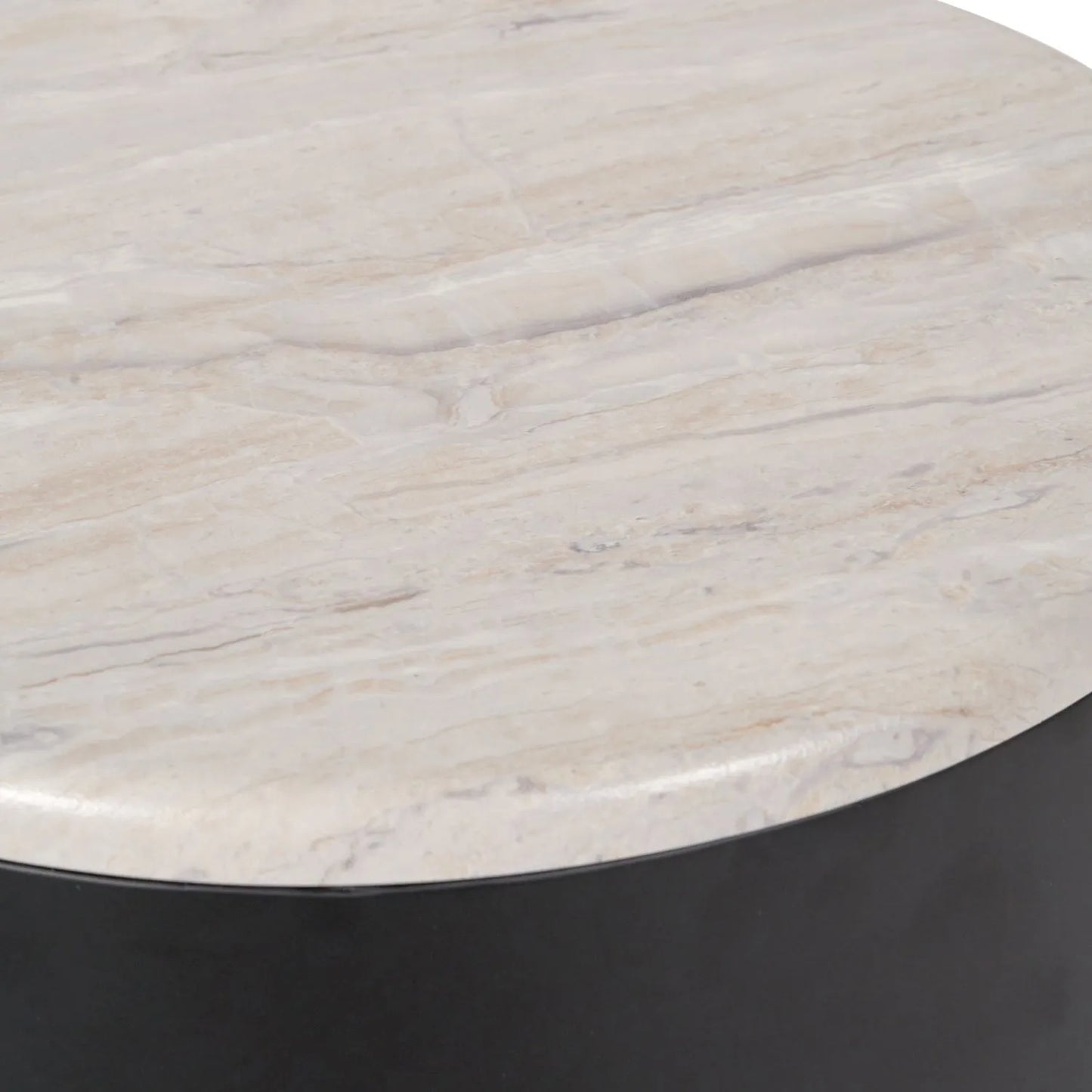 This round bedside table combines practical storage with sophisticated aesthetics, making it a great addition to bedrooms, living rooms, or reading nooks. The removable lid doubles as a tabletop, offering a sturdy surface for lamps, books, drinks, or decorative accessories. Its marble-effect finish adds a luxurious touch, beautifully complementing the bold black metal base for a striking contrast.