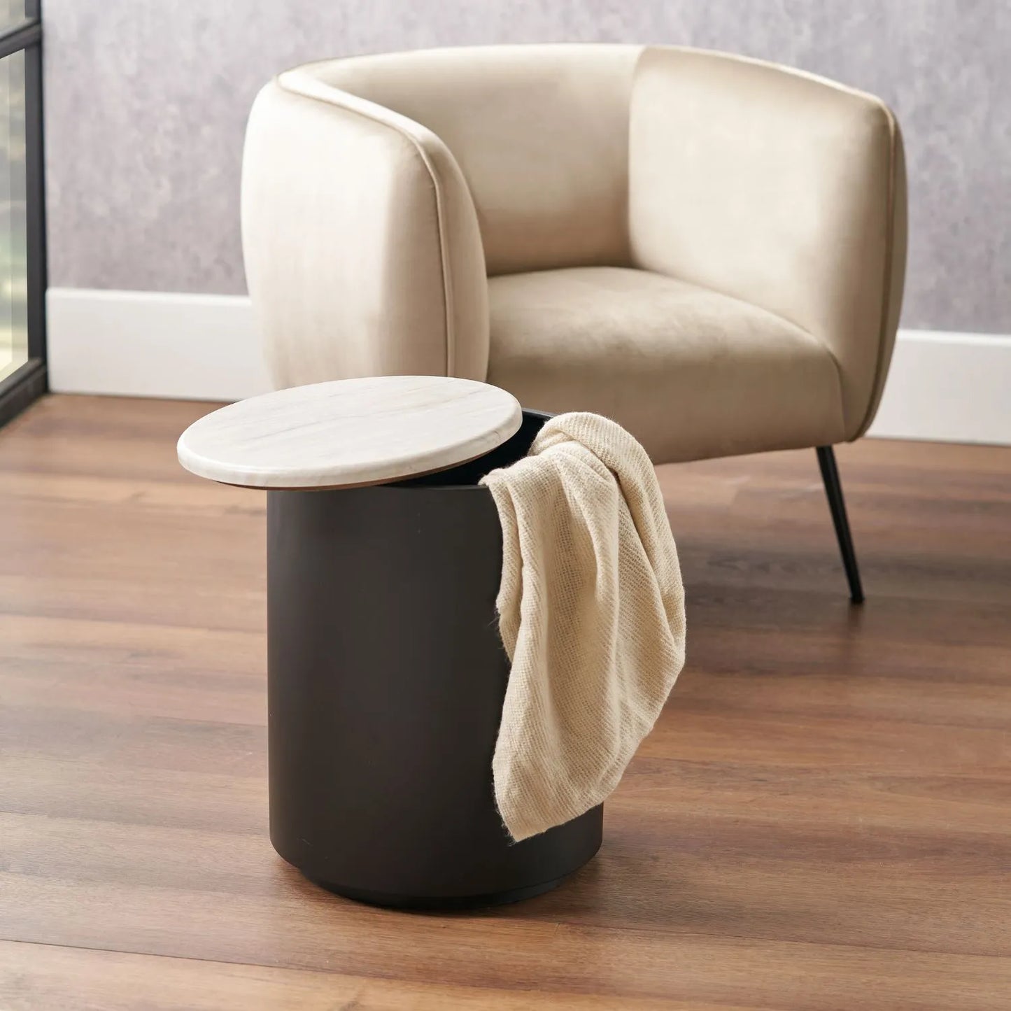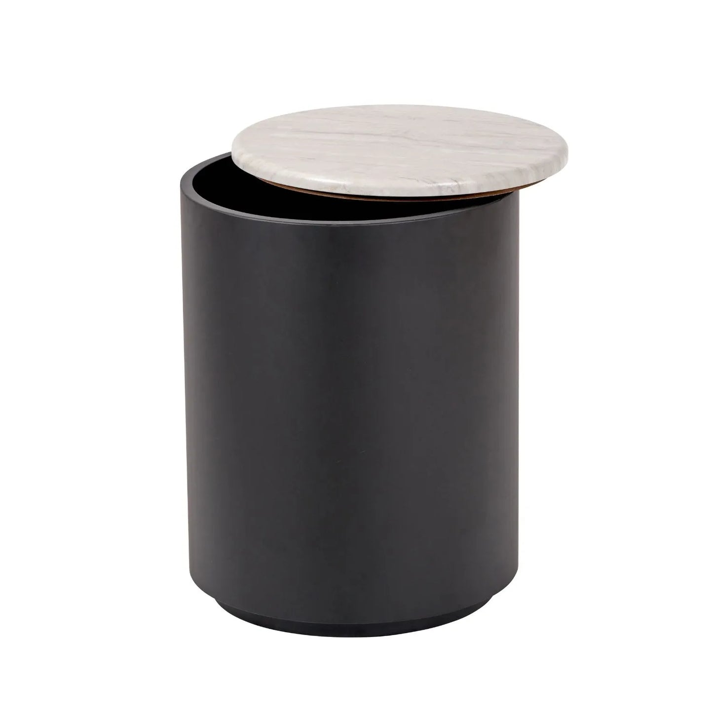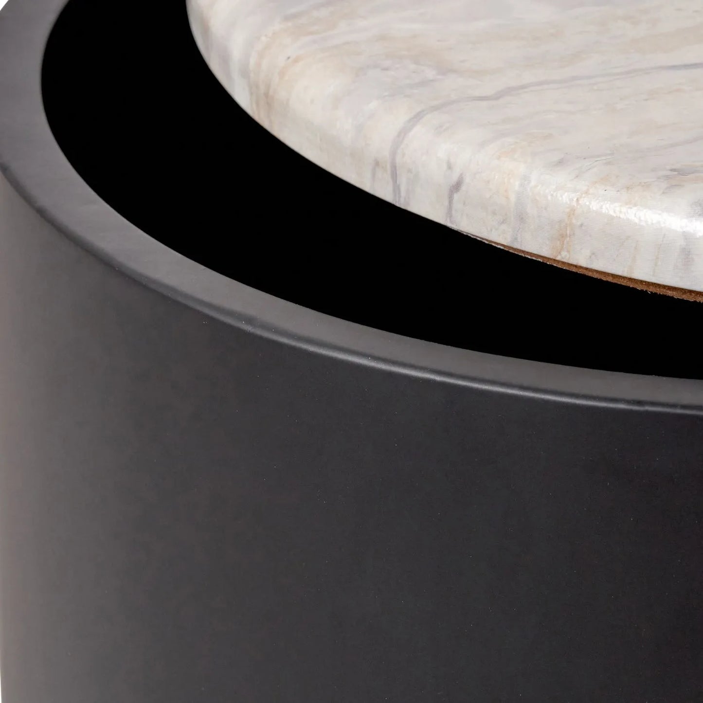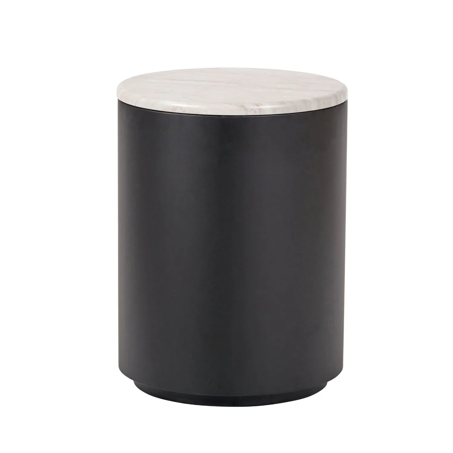 Add style and functionality to your home with this matt black metal and white marble-effect side table, a sleek and versatile storage solution for contemporary, industrial, and modern interiors. Featuring a cylindrical metal base in a smooth matt black finish and a removable round white marble-effect lid, this side table offers a hidden storage compartment, making it perfect for keeping essentials organised while maintaining a clutter-free look.