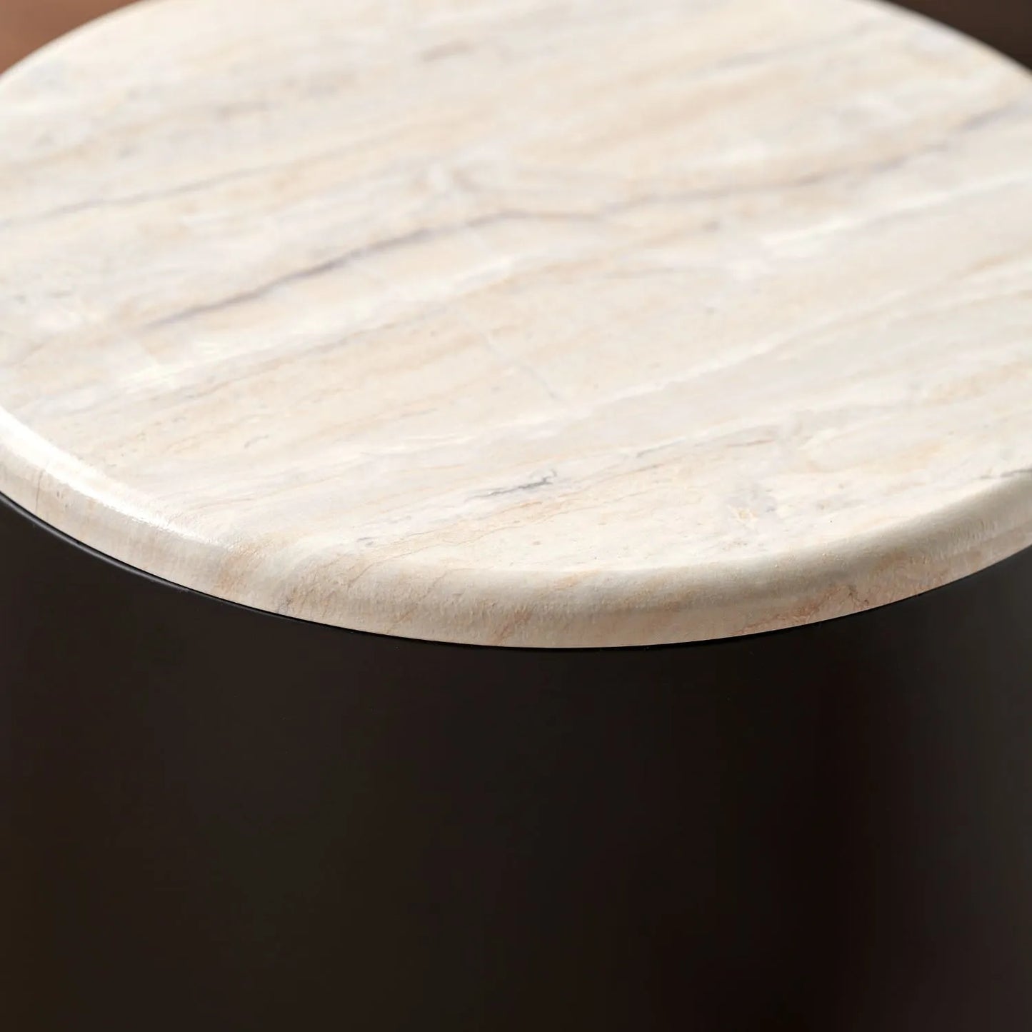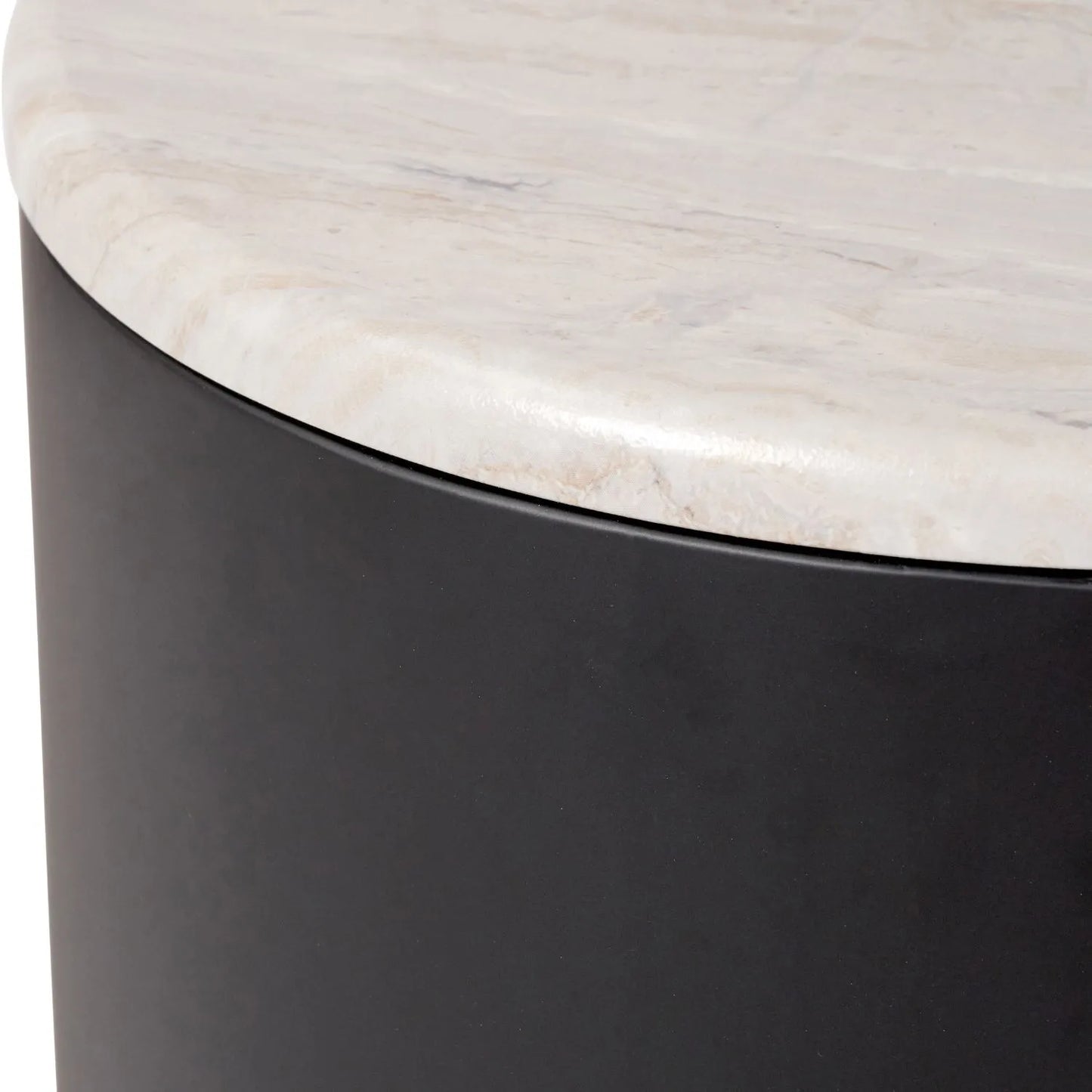 Matt Black Metal & White Marble-Effect Side Table with Storage & Removable Lid – Round Bedside Table Ø49x37cm