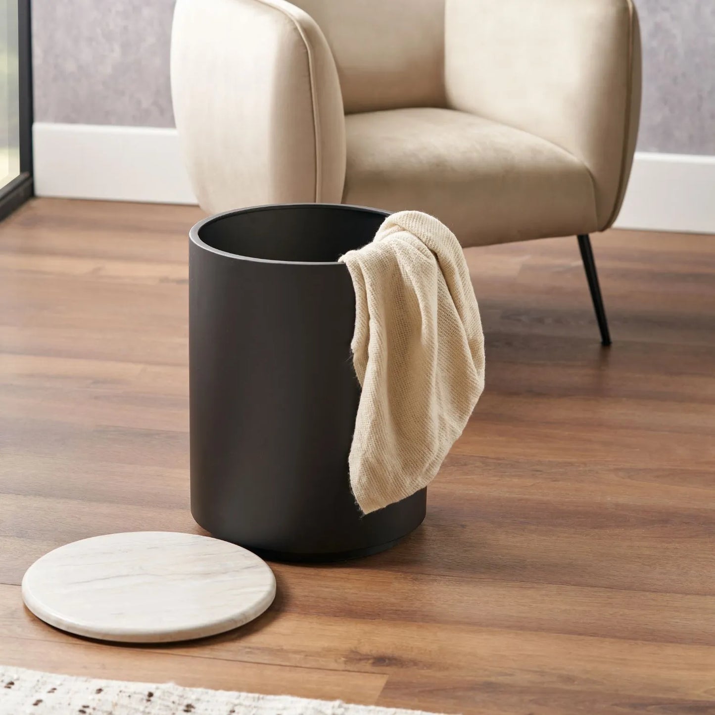 - Stylish Contrast – The marble-effect lid and black metal base create a contemporary look.