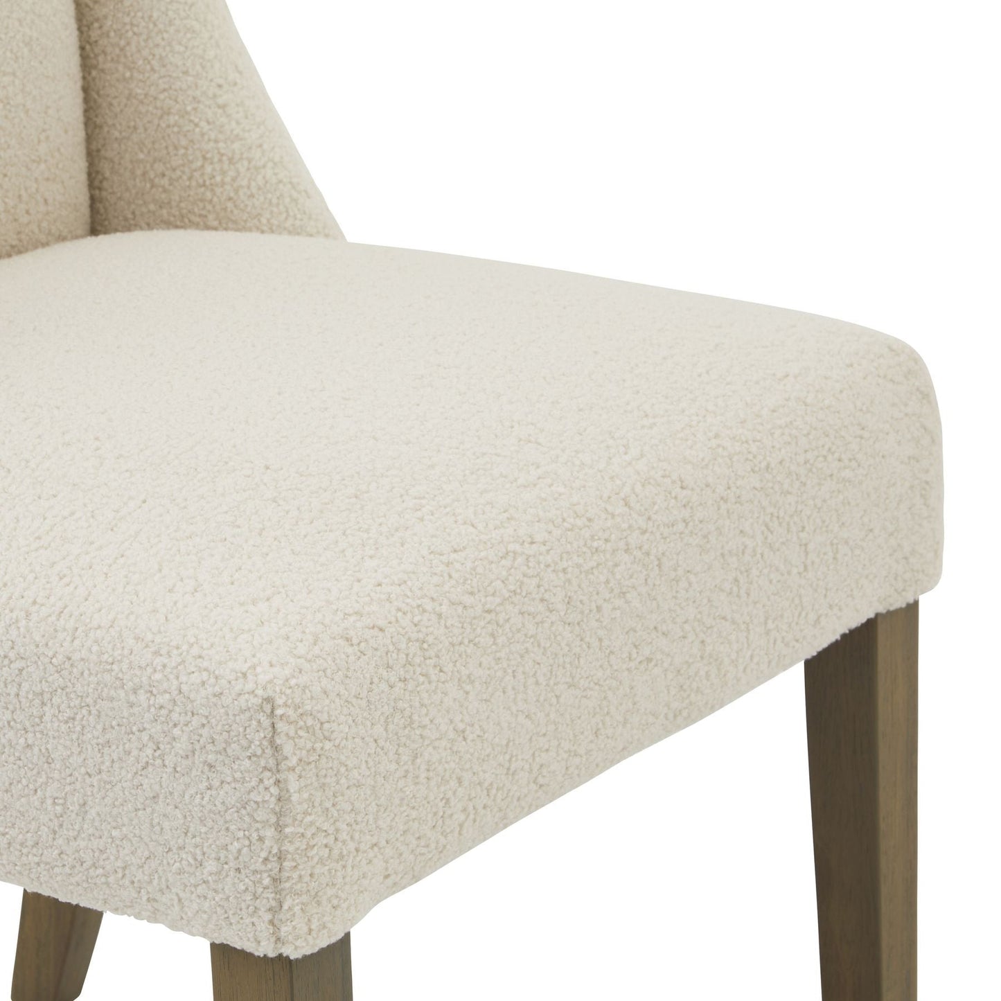 Feast your peepers on our modern cream bouclé fabric dining chair, a proper head-turner that’s itching to take pride of place at your dining table. The seat's as plush as a bear hug from a fluffy cloud, making this chair the queen of cosy.
