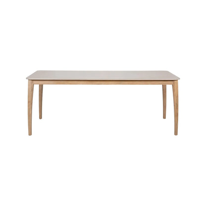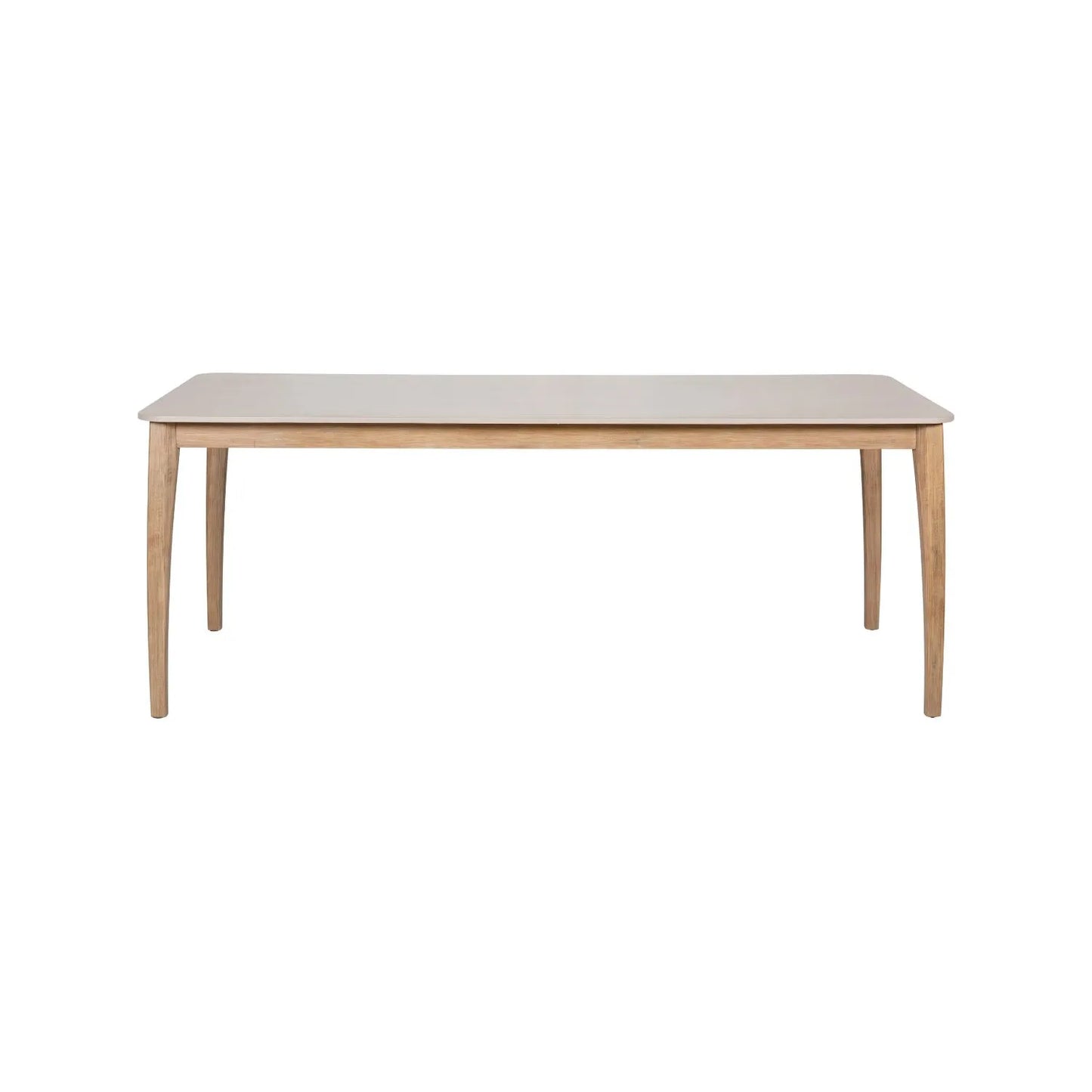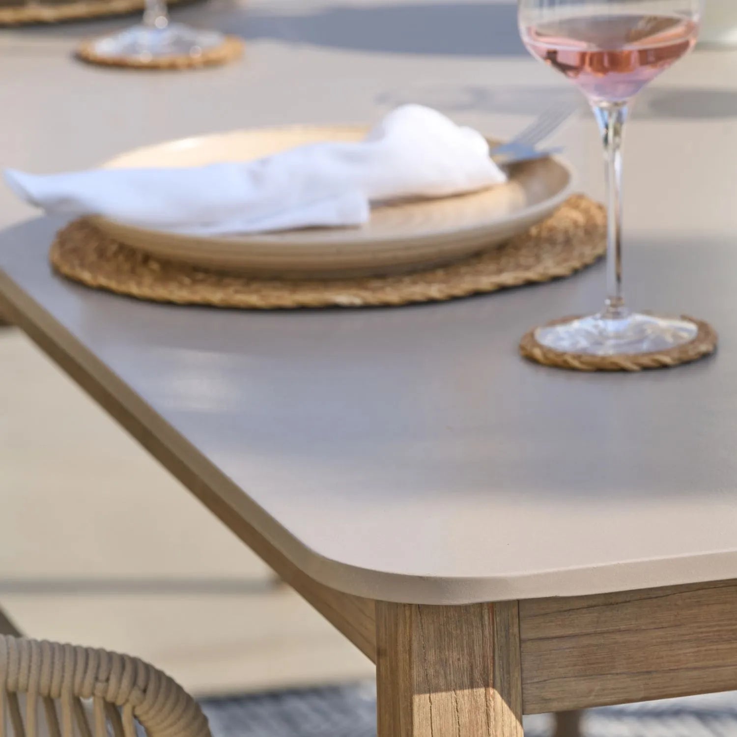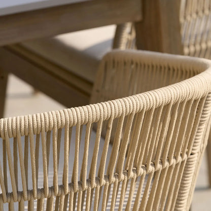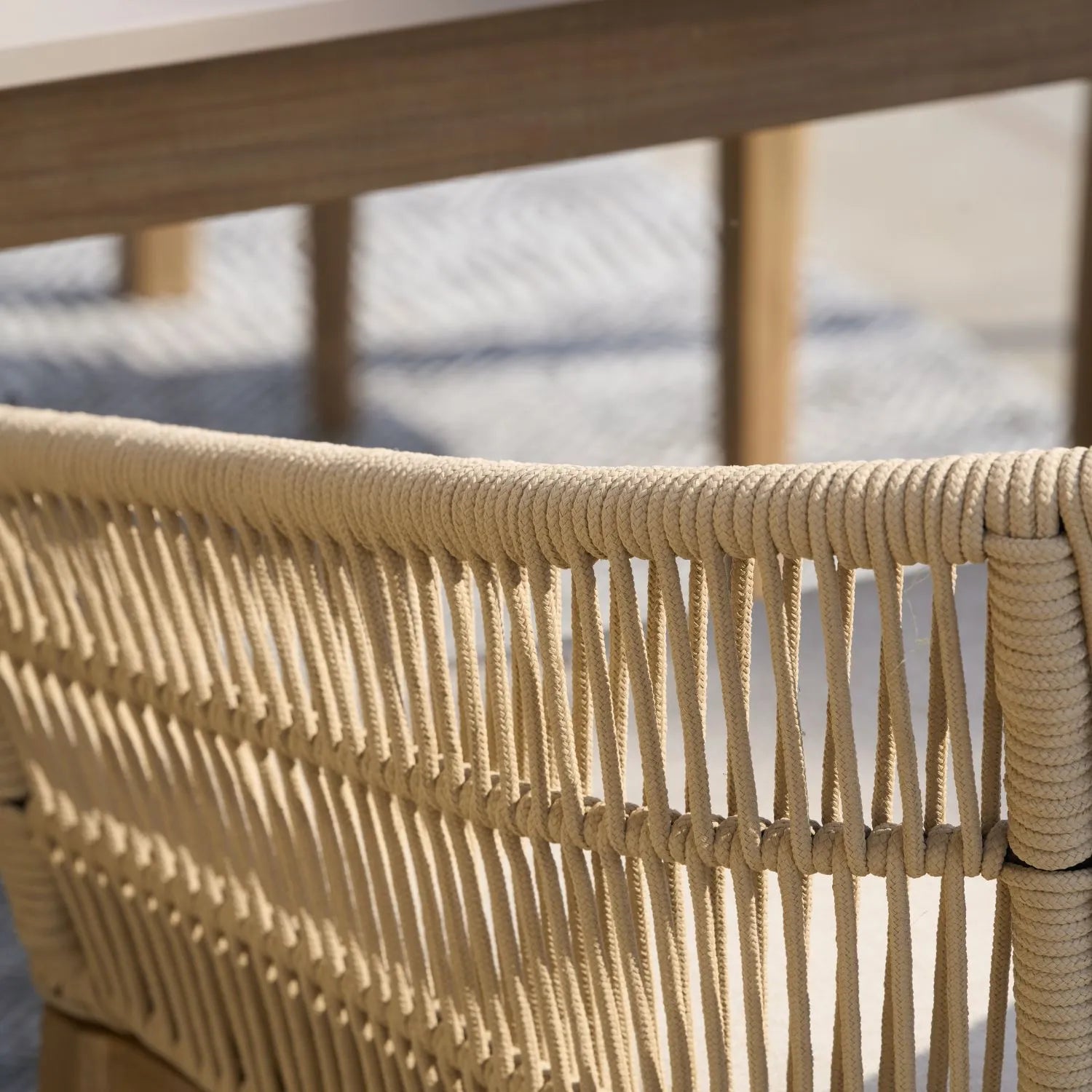 Neutral Beige 6-Seater Outdoor Rope Garden Dining Set with Cushions – Acacia Wood & Polyrope Chairs & Polystone Table 76x200x100cm