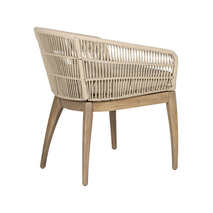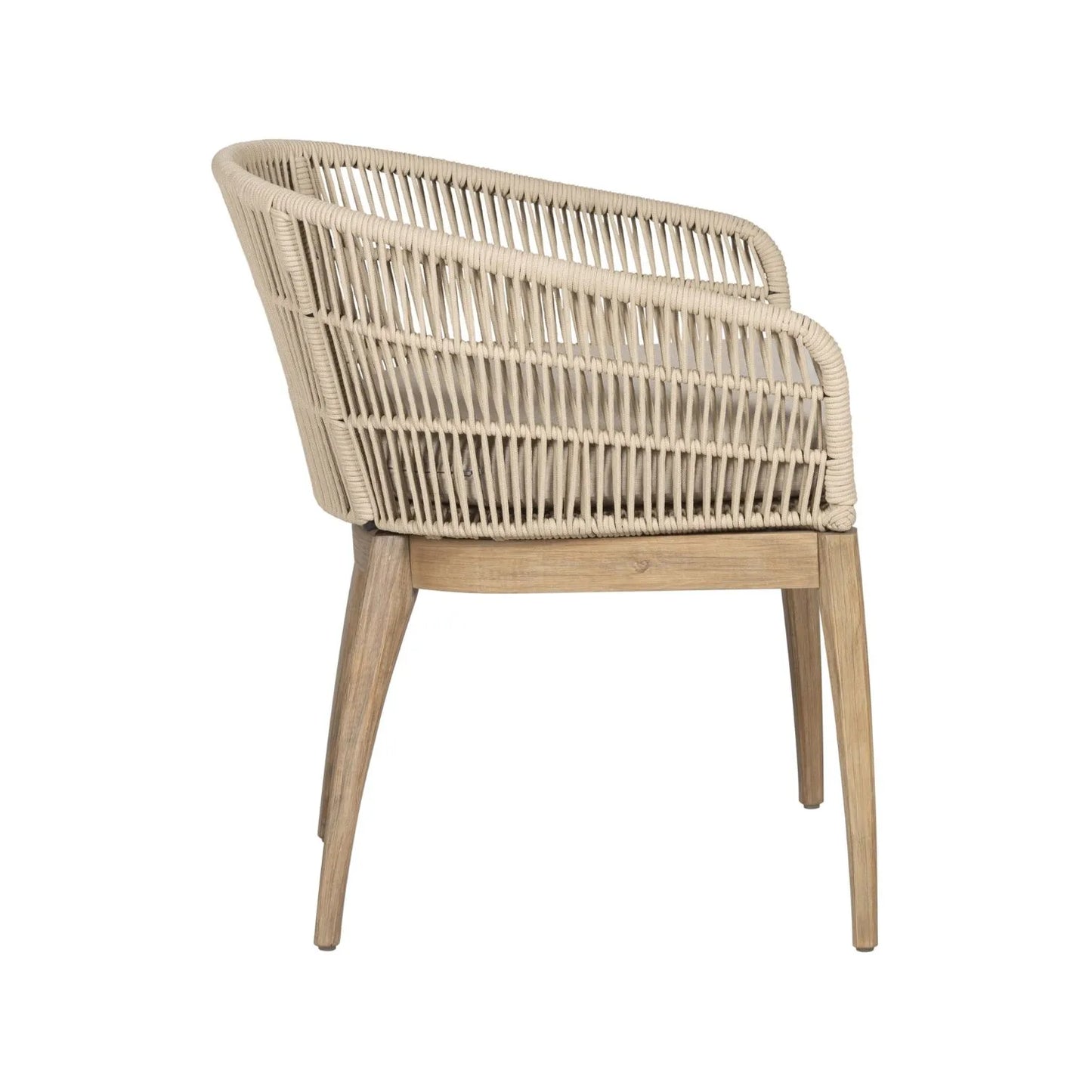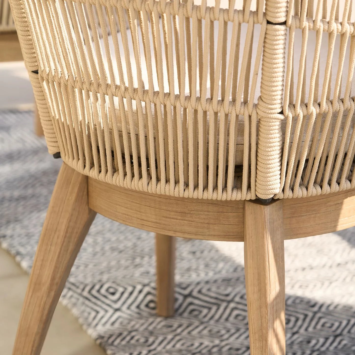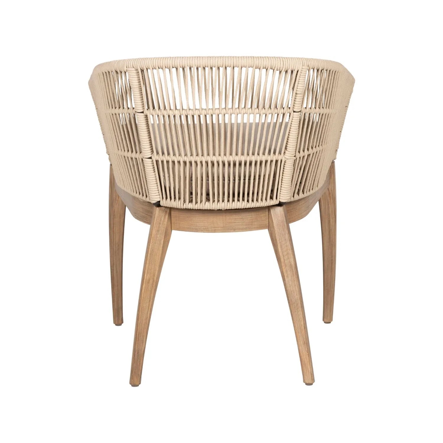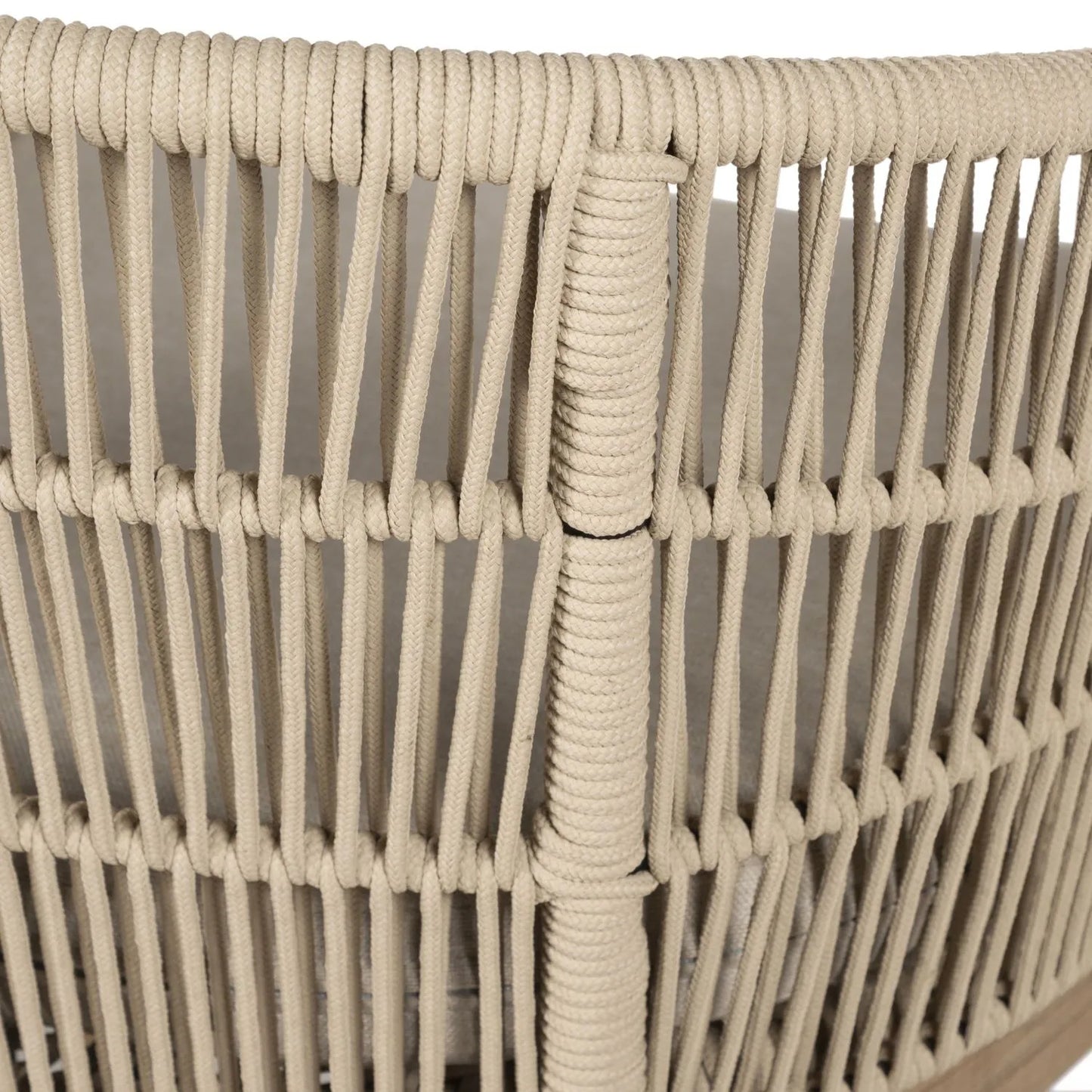 - Durable acacia wood frames with hand-woven latte beige polyrope weave