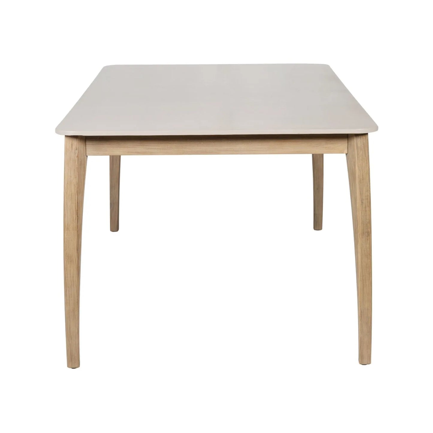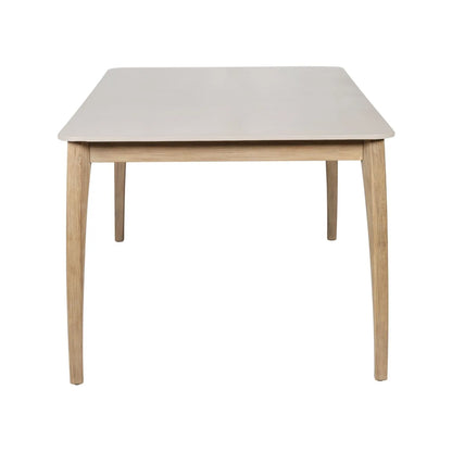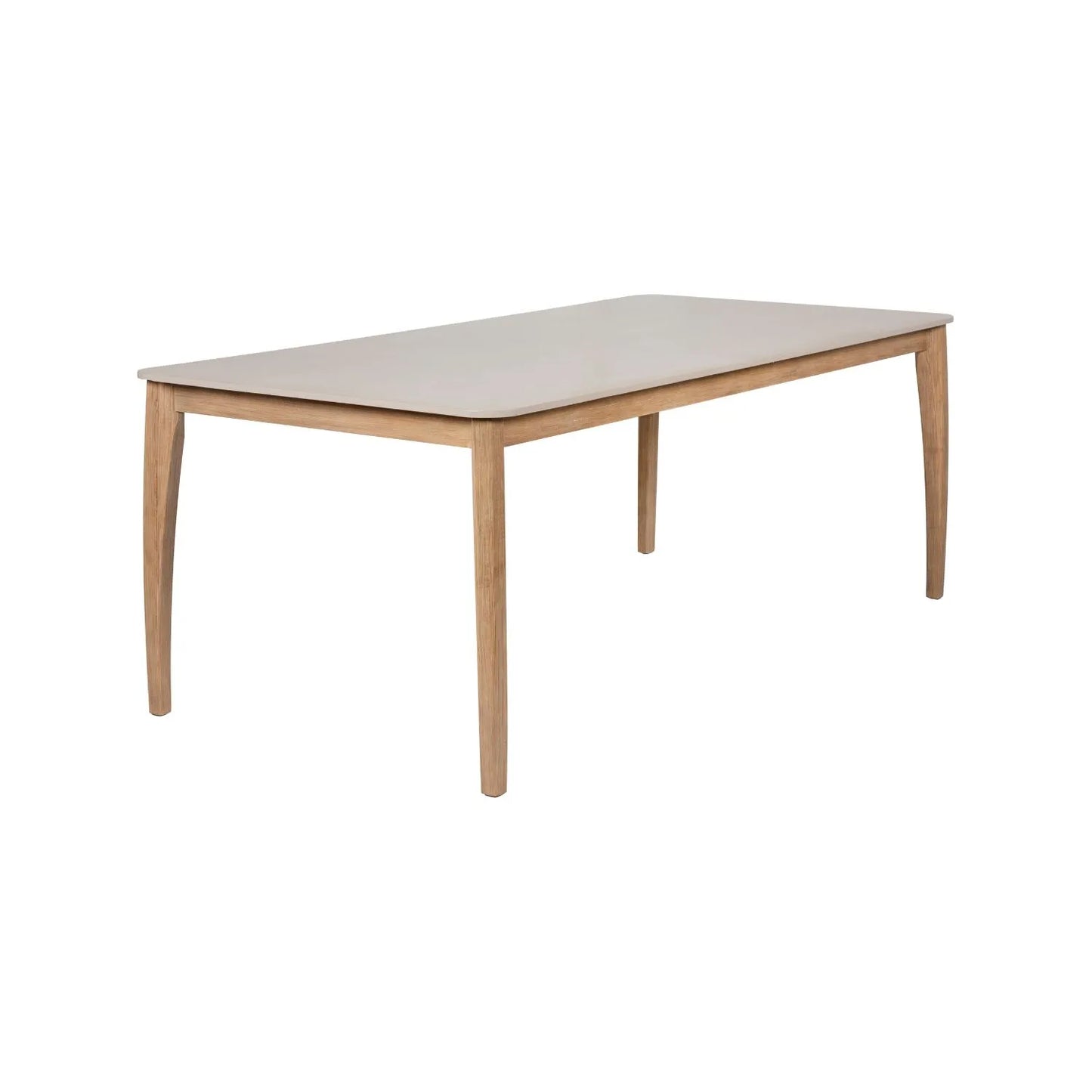 The spacious dining table features the same warm acacia wood frame with a cement-coloured polystone top in a light grey finish, offering a stylish, hardwearing and easy-to-clean surface. Designed for outdoor durability, this weather-resistant set combines tactile materials with a neutral, natural finish to complement both modern and traditional garden schemes.