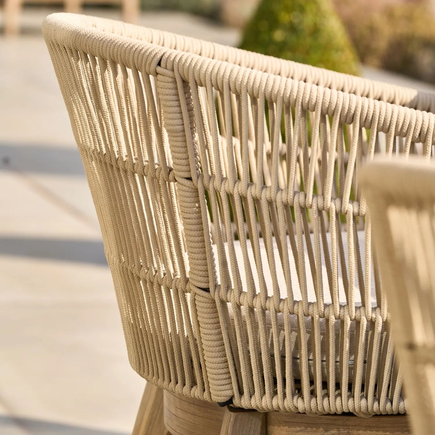 Ideal for summer entertaining, weekend brunches or relaxed family meals outdoors, this six-seater rope garden set blends comfort, quality and timeless design. Style it with an outdoor rug and add a tabletop fire lantern or candle centrepiece to bring warmth and atmosphere to your summer evenings.