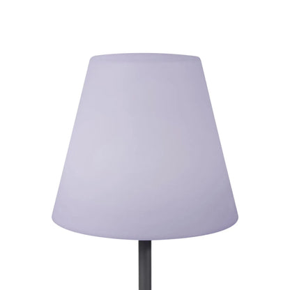 Built for the outdoors, the lamp is constructed from durable, weather-resistant materials including polyethylene, aluminium and steel. It features a built-in toggle switch to adjust brightness and colour modes, allowing you to customise the lighting to suit your atmosphere. Choose from a range of ambient colour modes, including warm white, cool white, pink, green, yellow, lavender, and blue – ideal for setting the mood in your outdoor space, from subtle to vibrant. Simply charge indoors, then enjoy cordless illumination throughout the evening.