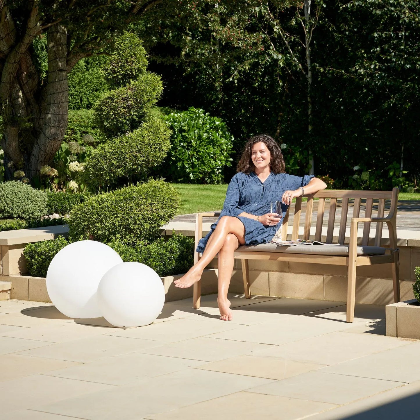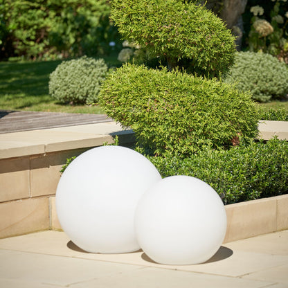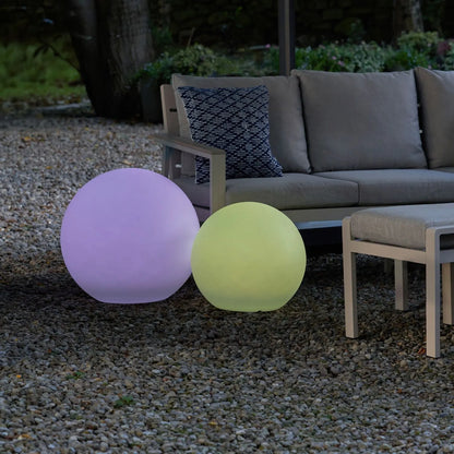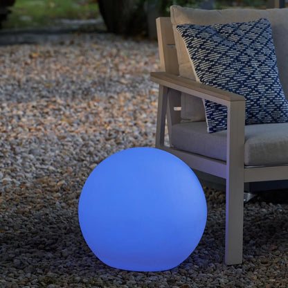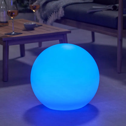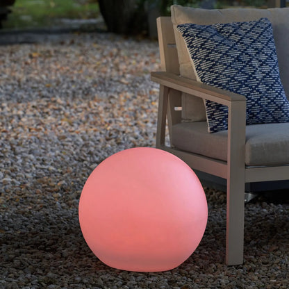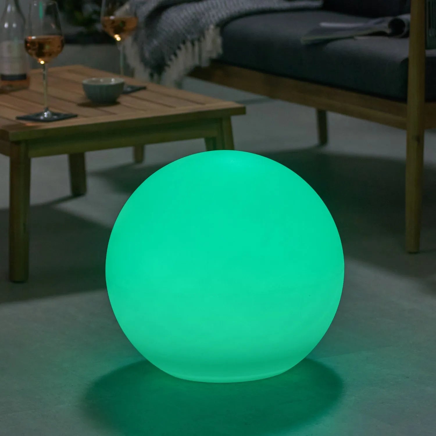 Bring bold style and ambient lighting to your garden, patio, or balcony with this large outdoor LED sphere light. Designed to make a statement, it features a built-in rechargeable LED light that offers vivid colour-changing effects and a soft, atmospheric glow. With no cables or plugs required, this cordless design can be positioned wherever you need a decorative highlight or impactful lighting – from the lawn to a seating area or poolside.