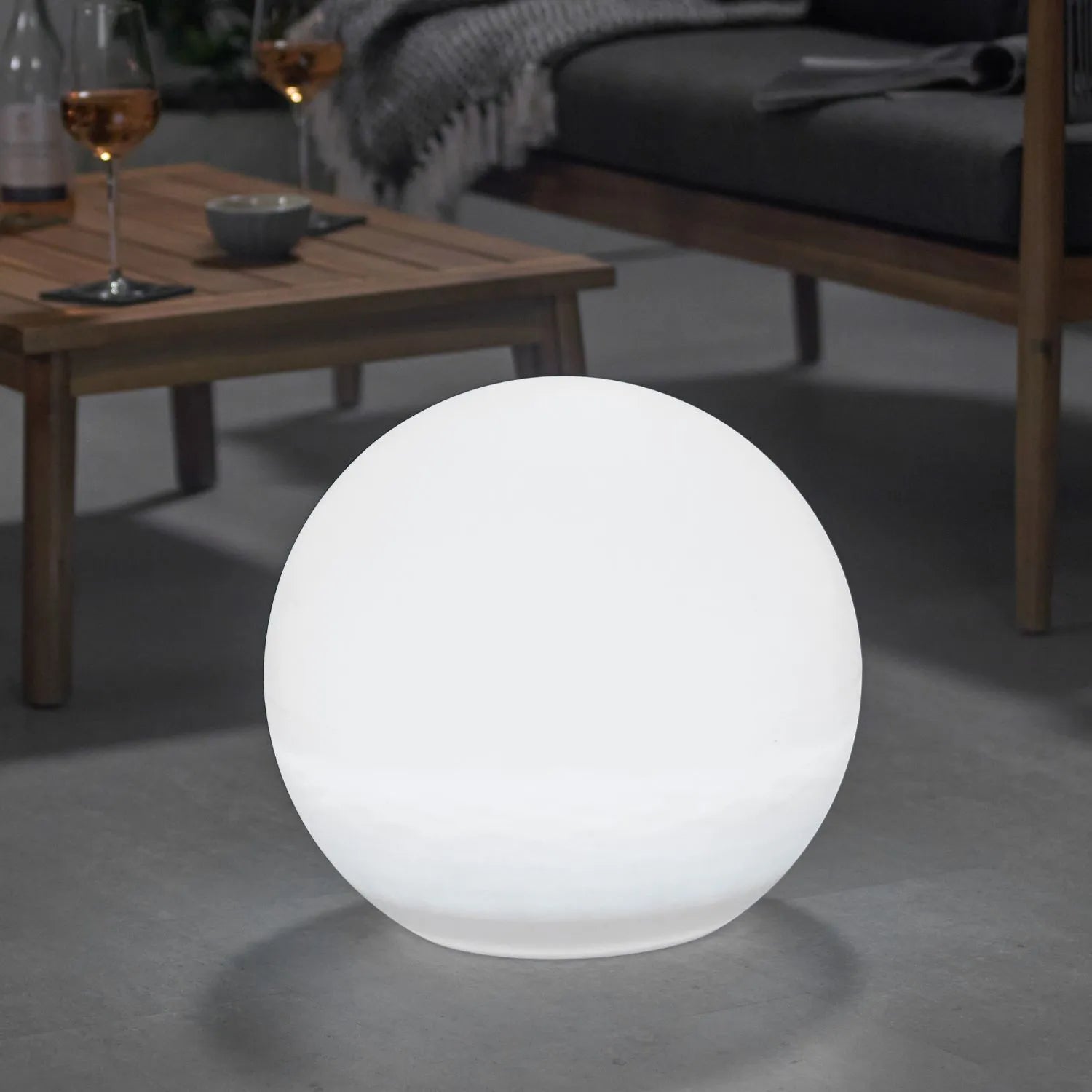 Crafted from sturdy, weather-resistant polyethylene with a felt base that protects delicate surfaces and provides added grip and stability when placed on patios, decking, or indoor floors. This contemporary orb-style garden ball lamp is made to withstand year-round outdoor use. It features a built-in toggle switch to adjust both brightness and colour, giving you full control over the ambience. The lightweight design makes it easy to reposition depending on the occasion or setting, while its smooth matt finish adds a sleek, modern edge to outdoor spaces.