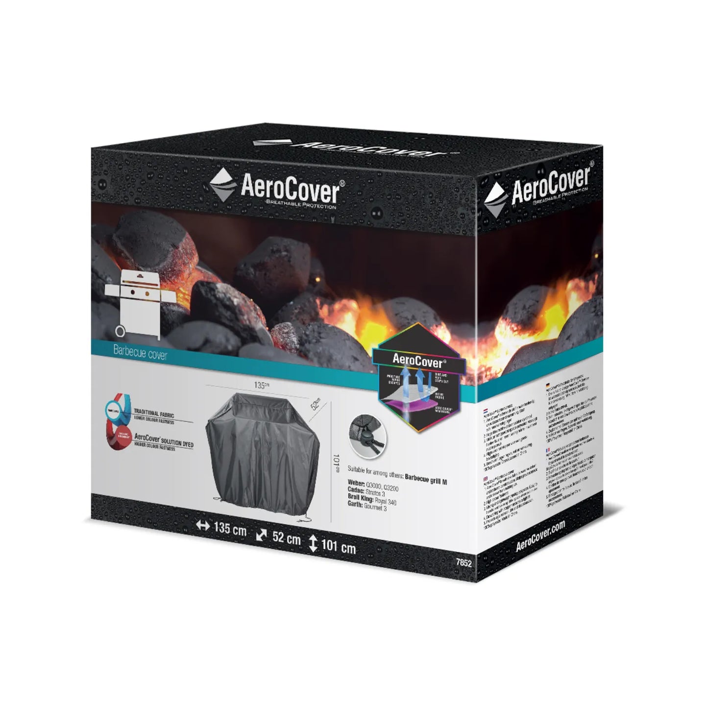 This Platinum AeroCover is designed to provide outdoor cover and protection for a gas barbecue with dimensions up to 135x52x101cm (DxWxH), when not in use, all year round. This BBQ cover is water-resistant, breathable, and provides UV protection. Storage bag included.