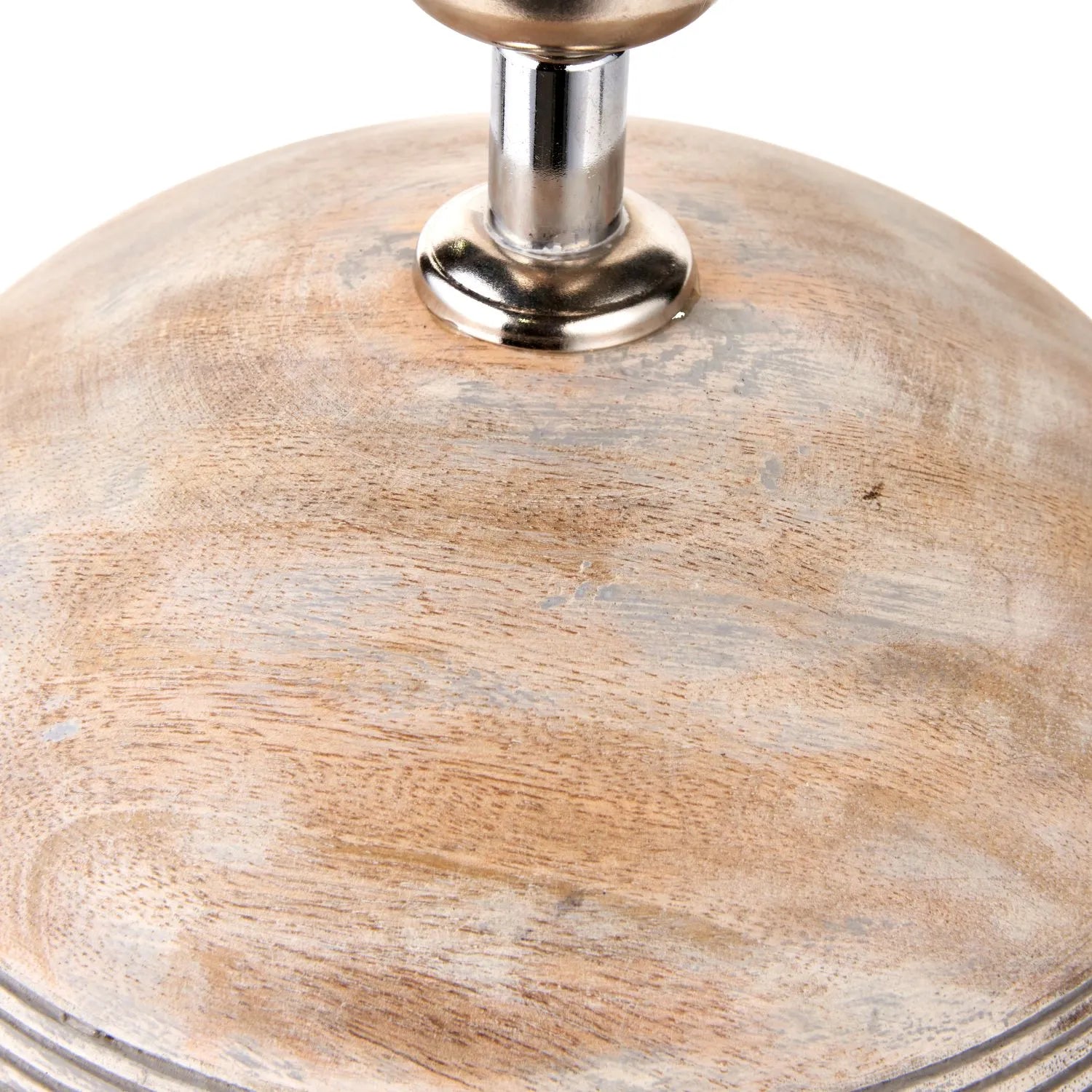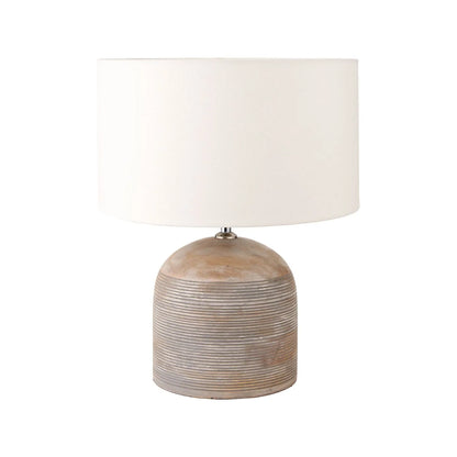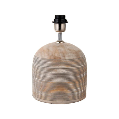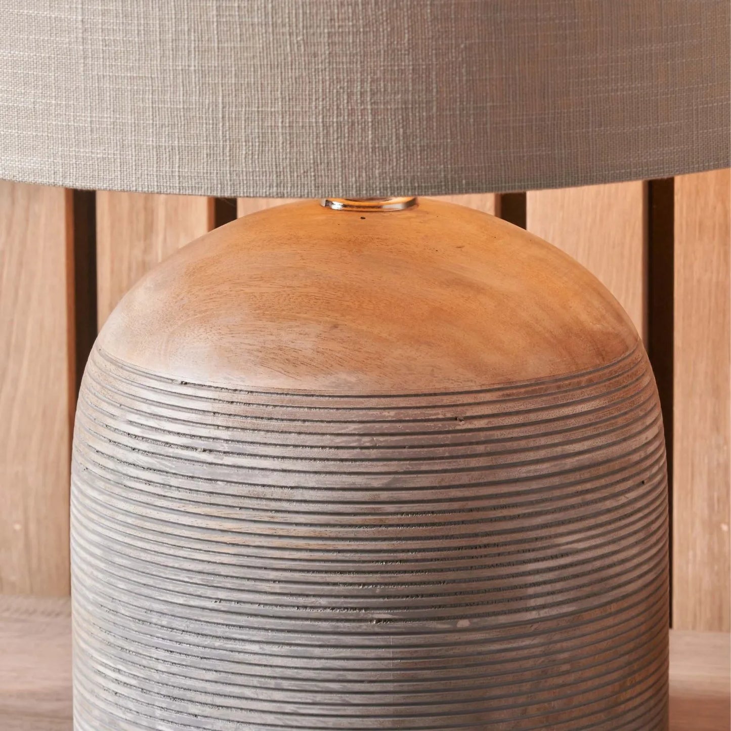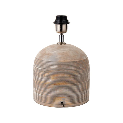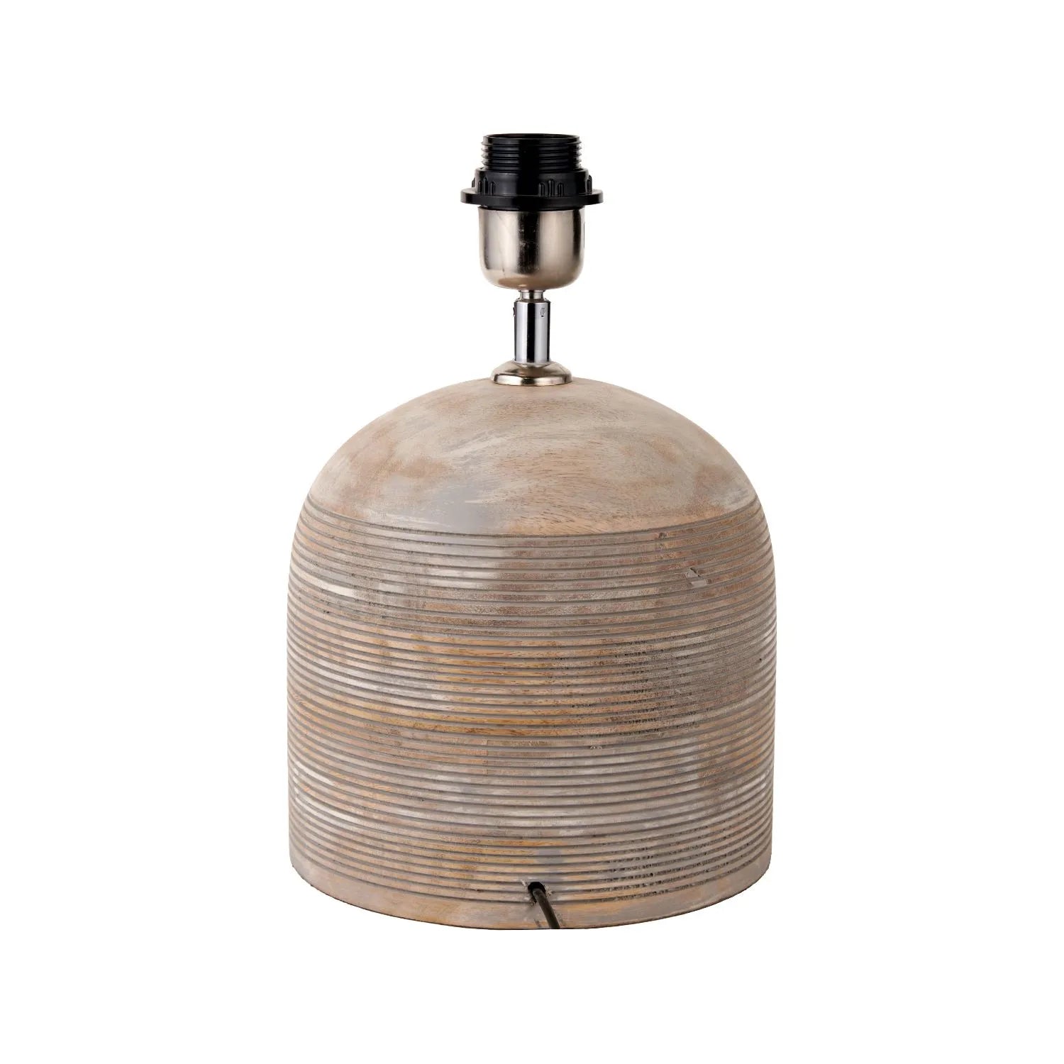 - Rustic grey-washed mango wood dome-shaped table lamp base with hand-carved horizontal line detailing