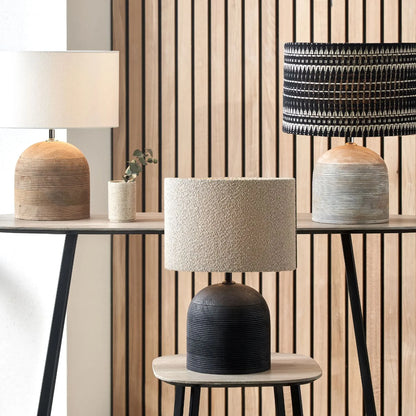Explore the full collection of mango wood table lamps and lamp bases, available in natural, grey-washed and black finishes across a variety of shapes and sizes.