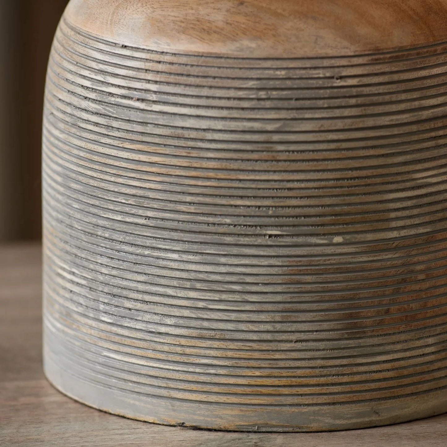 Rustic Grey-Washed Mango Wood Table Lamp Base with Hand-Carved Horizontal Line Detailing – Dome-Shaped Wooden Light 30x20x20cm