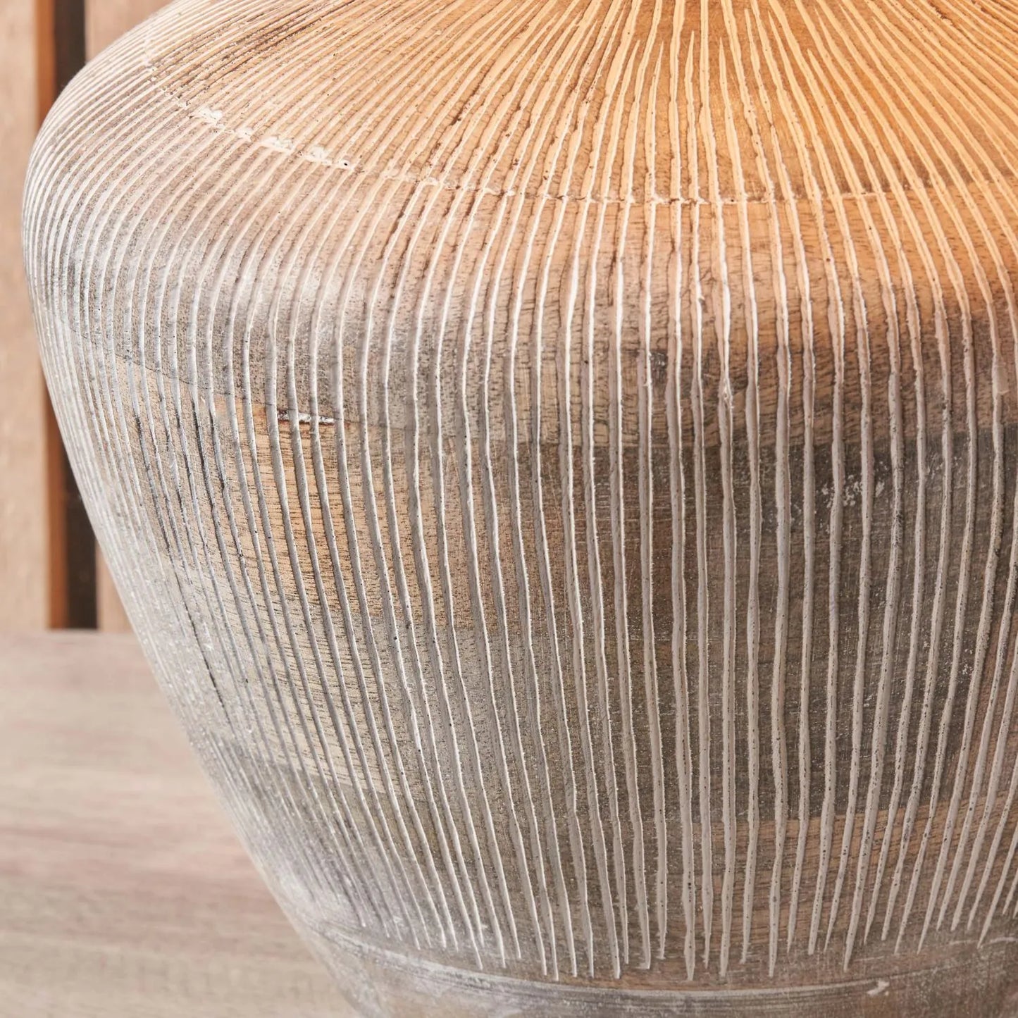 - Hand-carved vertical linework adds depth and artisan texture