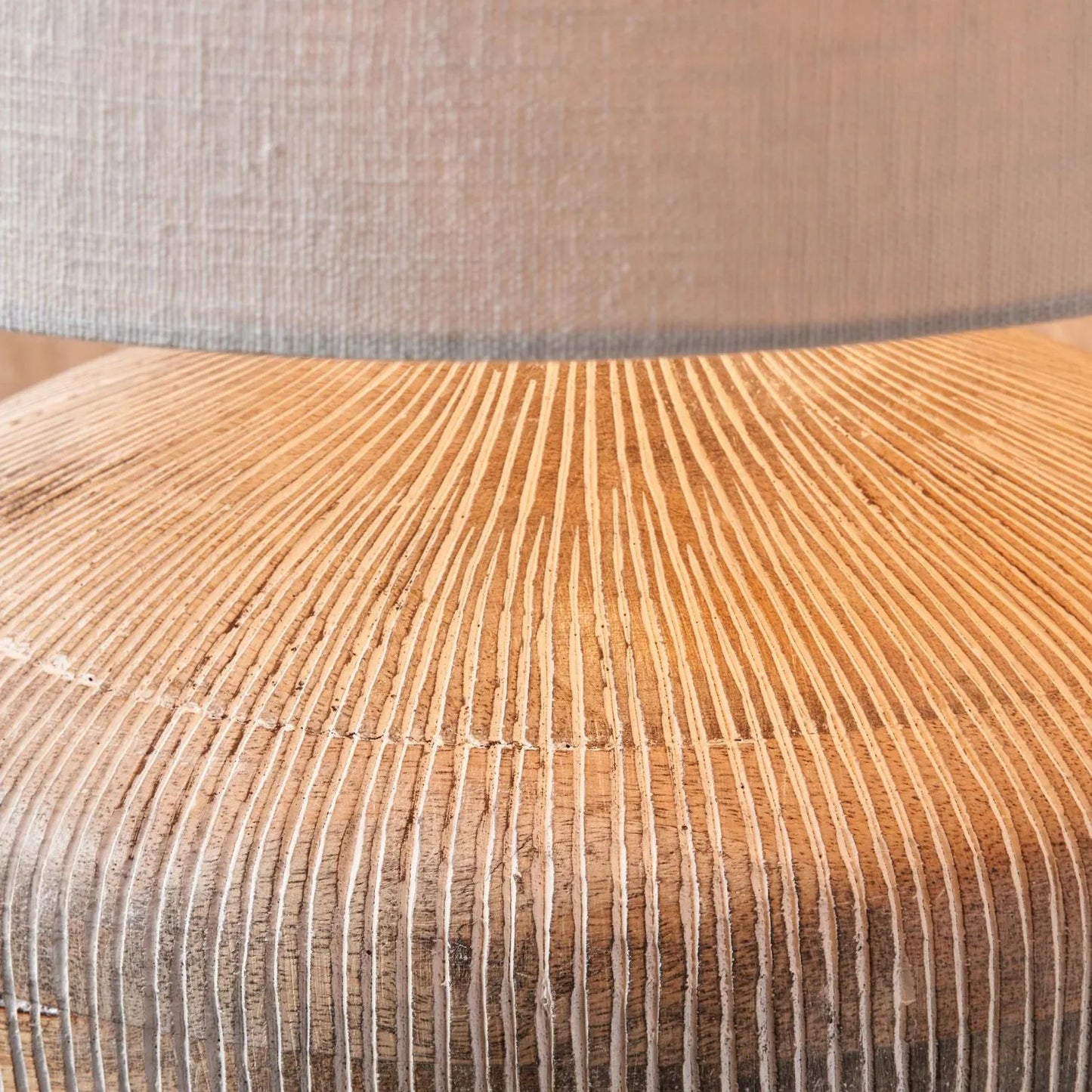 Also available as a standalone lamp base giving you the option to style it with your own 35cm shade or choose from our curated lampshades collection to suit your interiors. You can also choose a version with a taupe lampshade for a warmer, more textured look. For added contrast, the same hand-carved design is available in black mango wood, offered on its own or paired with a natural jute linen lampshade, black linen shade or dark grey shade – ideal for coordinating a tonal or layered lighting display.