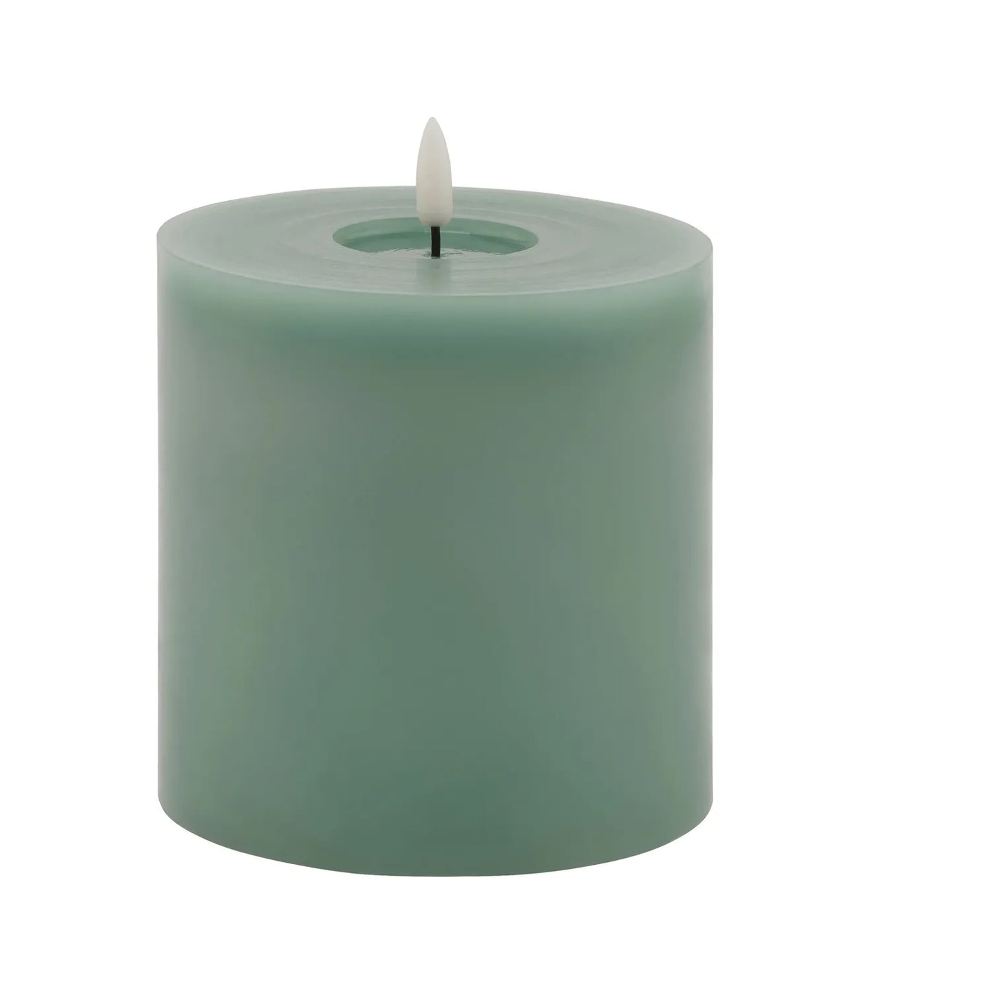 Sage Green LED Pillar Candle with Flickering Flame 13x13cm