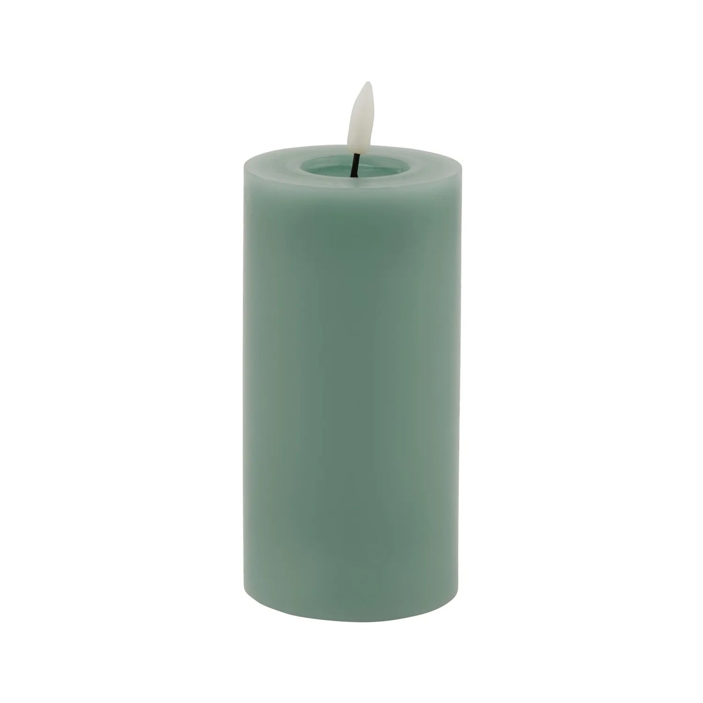Sage Green LED Pillar Candle with Flickering Flame 15x8cm