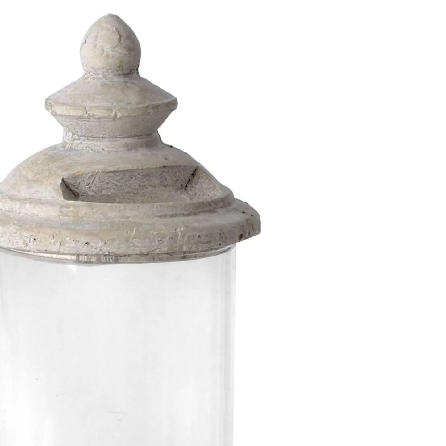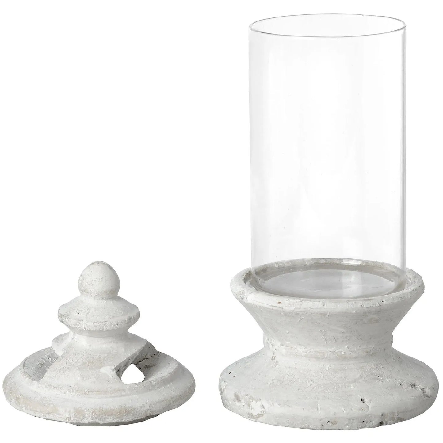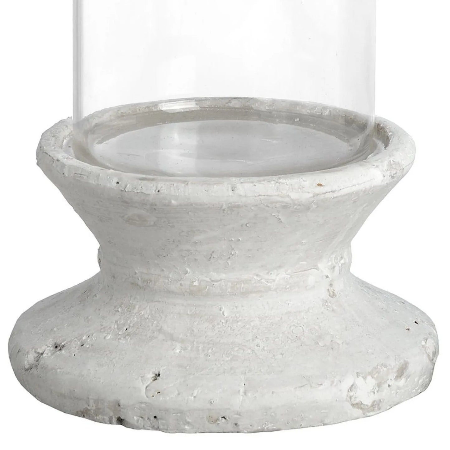 White Stone Hurricane Candle Holder with Lid – Decorative Glass Lantern for Pillar Candles 33x14cm